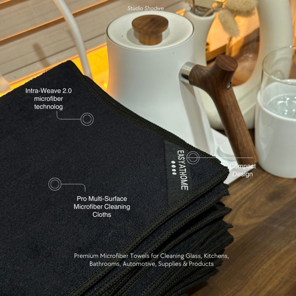 Easyathome Ultimate Black Wipe 400GSM ผ้าไมโครไฟเบอร์ดำ ผ้าเช็ดร้านอาหาร ร้านกาแฟ ดูดซับดี 40x40cm
