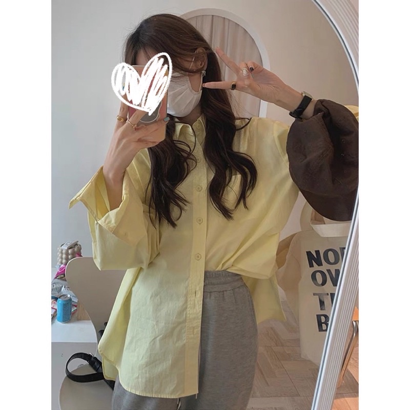 Cicishop(2165)เสื้อเชิ้ตทรงoversize เนื้อผ้าดีทรงสวยใส่แมทช์ง่ายสไตล์เกาหลีสุดๆ