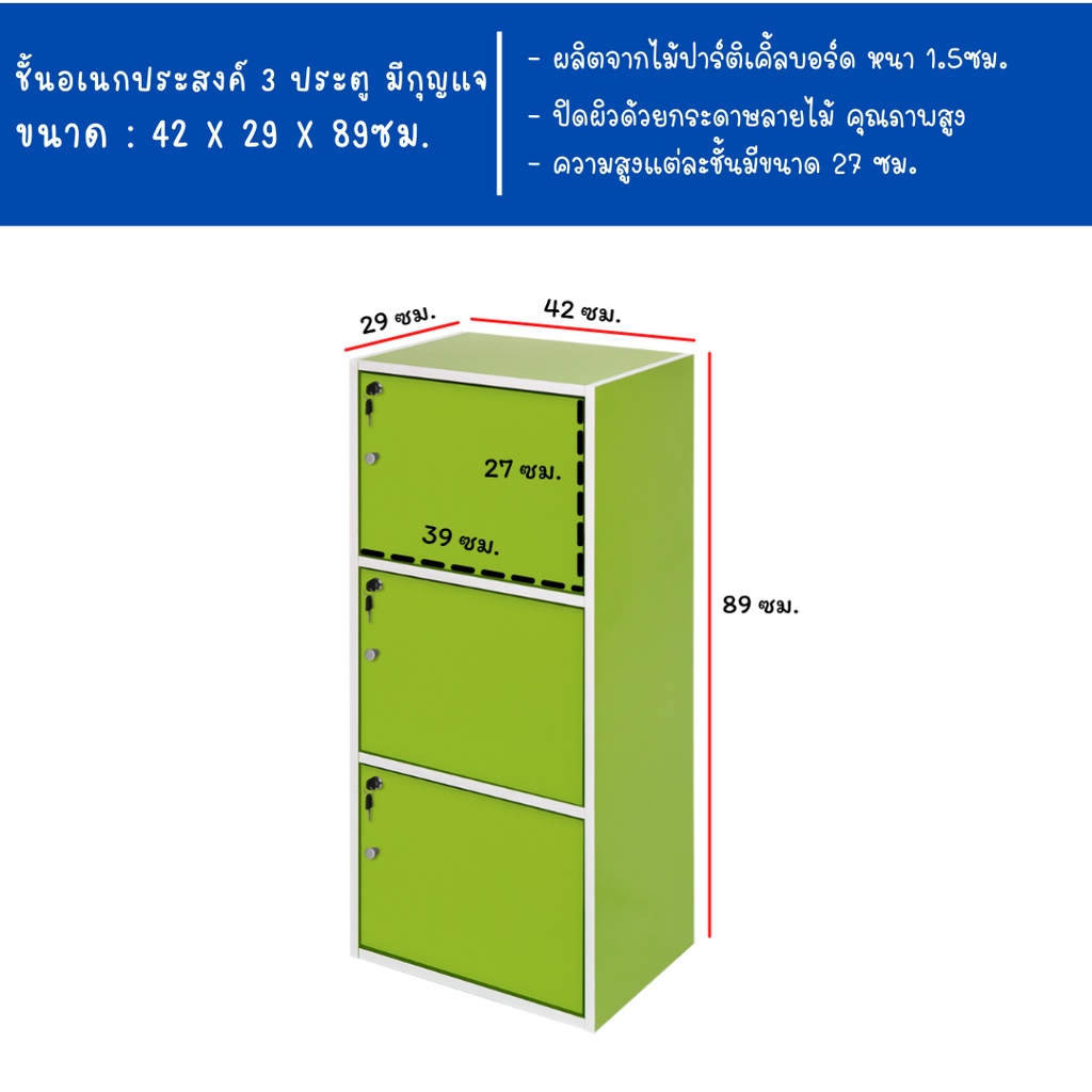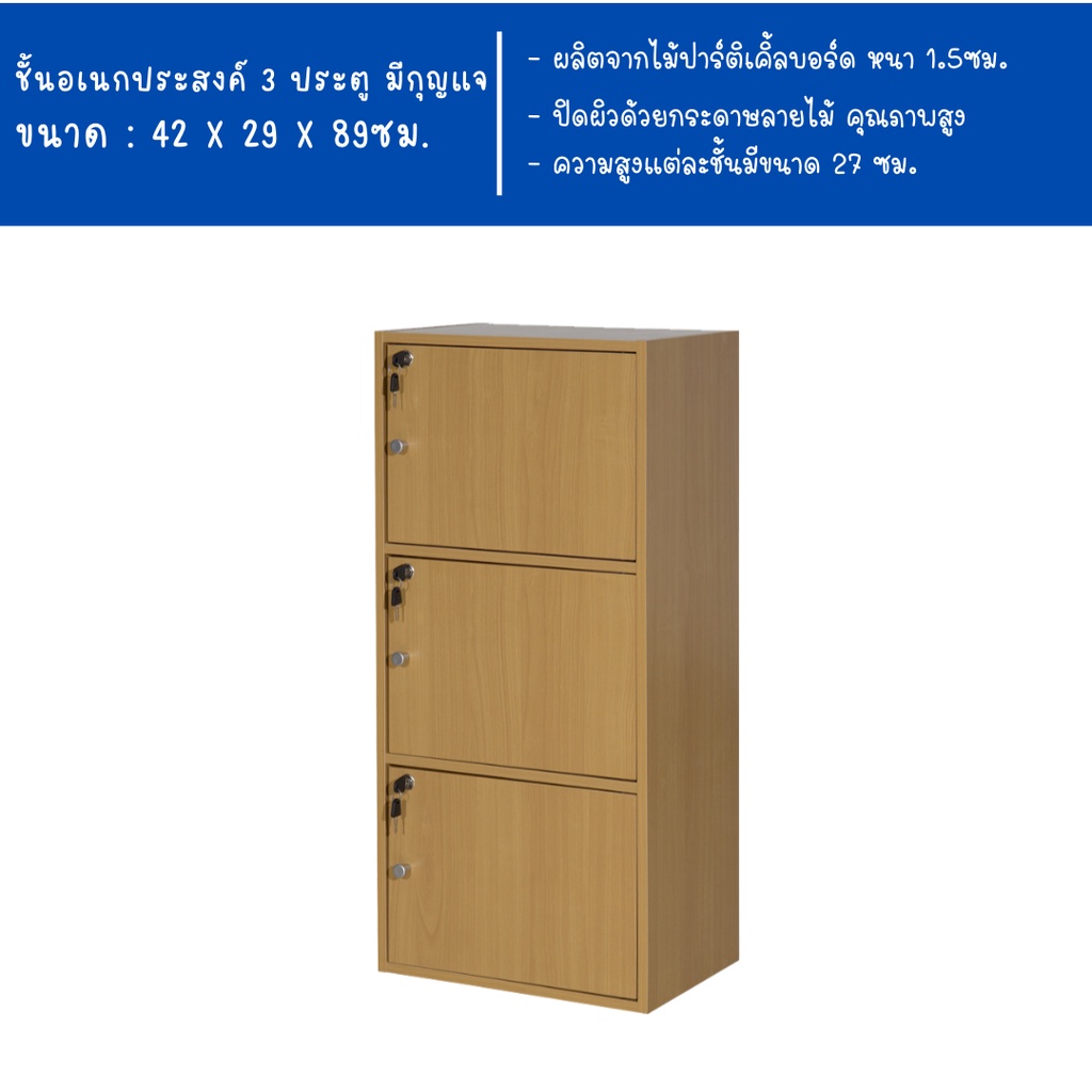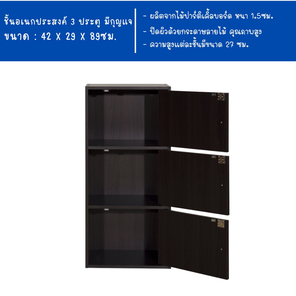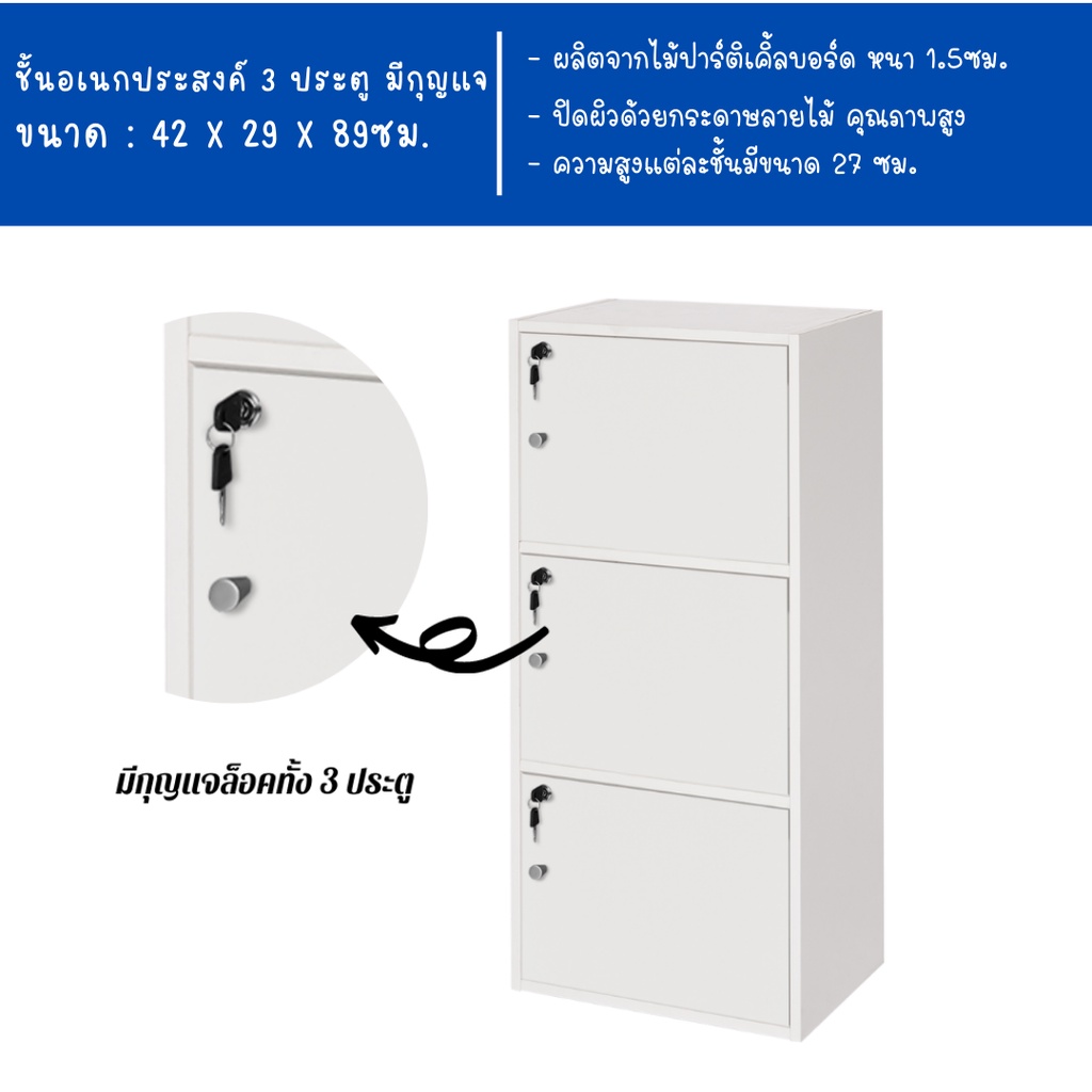 💡 ECF Furniture ชั้นวางของเอนกประสงค์ ชั้นวาง 3 ช่อง 3 ประตู มีกุญแจล็อค 💡 - ขนาดสินค้า : 42 x 29 x 89 ซม. - ผลิตจากไม้ปาร์ติเคิ้ลบอร์ด - ความสูงแต่ละชั้นมีขนาด 27 ซม. - เข้ากับทุกห้อง ช่วยเพิ่มพื้นที่ในการจัดเก็บ ทำให้การเก็บของเป็นเรื่องง่ายดาย - ใช้เก็บของต่างๆ ของใช้ วางสิ่งของ หนังสือ