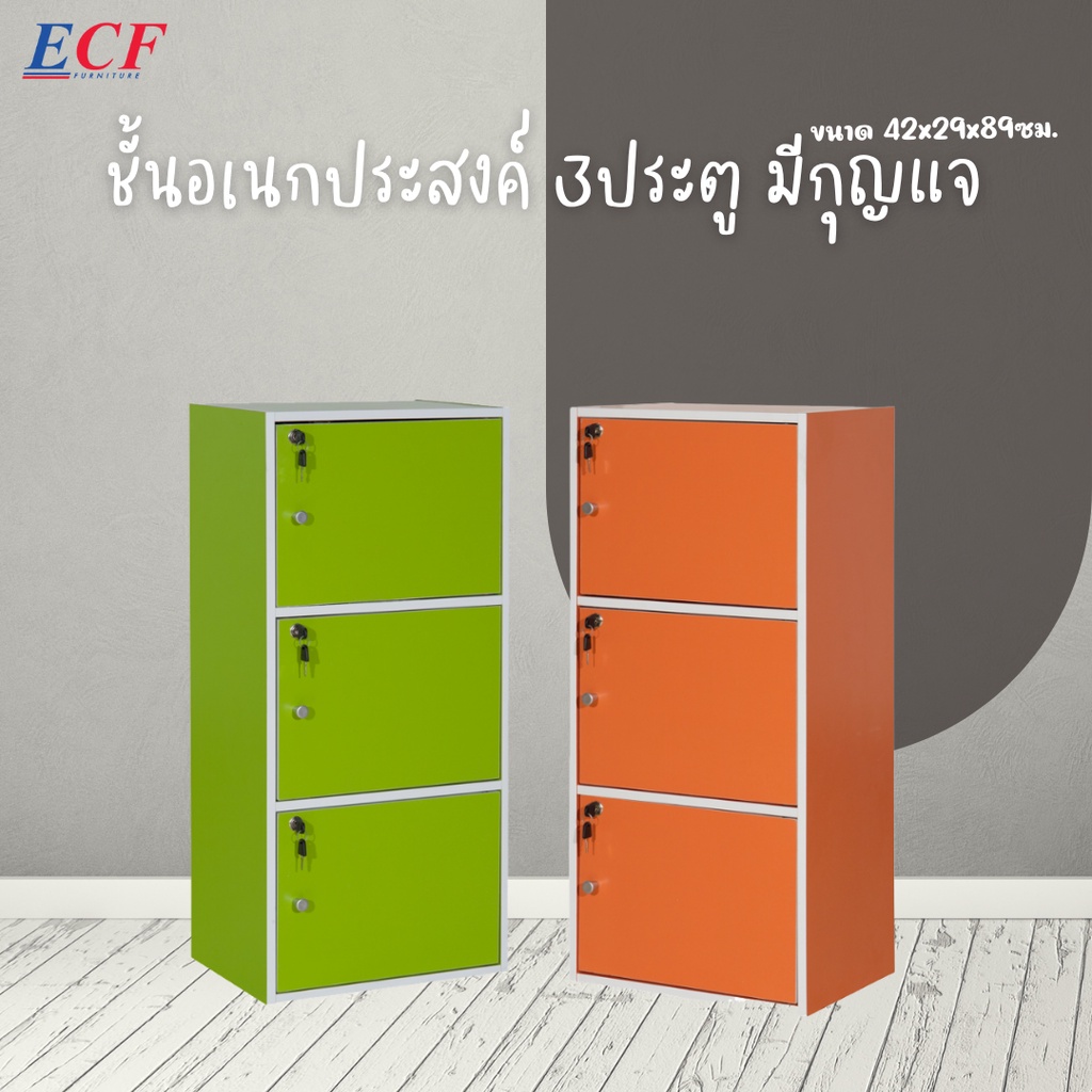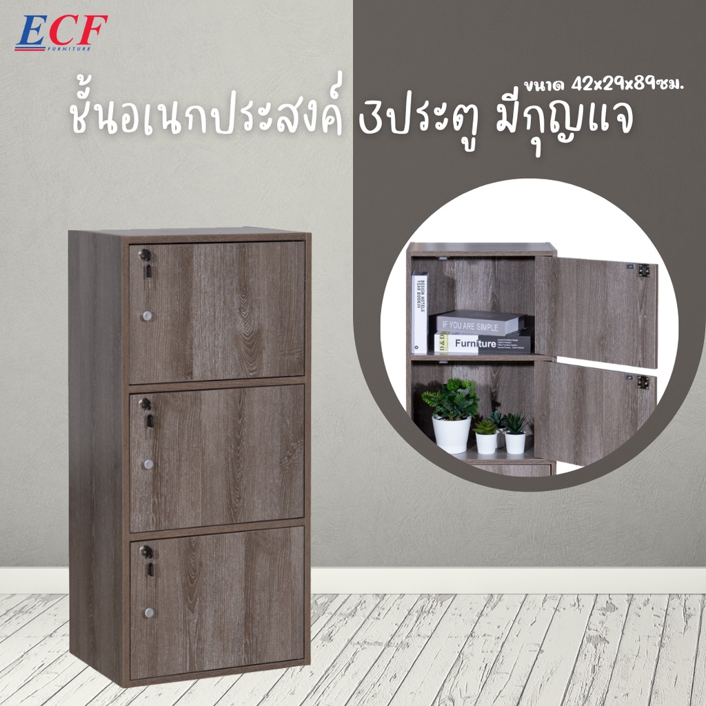 ECF Furniture ชั้นวางของเอนกประสงค์ 3 ช่อง 3 ประตู มีกุญแจล็อค