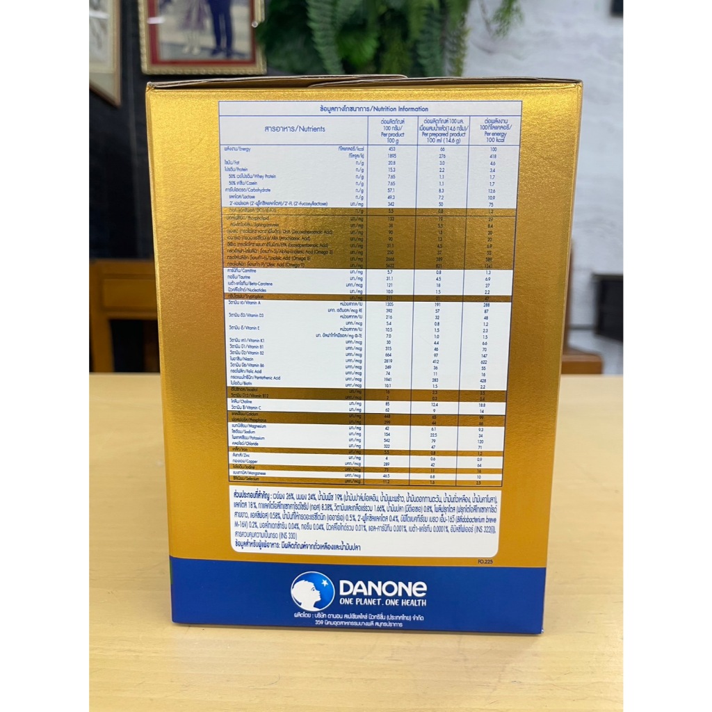 ... สิทธิ์เฉพาะ ประกอบด้วย โพรไบโอติก บิฟิโดแบคเรียม เบรเว เอ็ม-16วี และ ใยอาหารกอส/แอลซีฟอส ในสัดส่วนเฉพาะ 9:1 • มี 2’-FL • น้ำมันปลา (มีดีเอชเอ) • น้ำมันที่ให้กรดอะแรชิโดนิก (เออาร์เอ) • วิตามินรวม • เกลือแร่รวม • ทอรีน • แอลคาร์นิทีน • เบต้าแคโรทีน • นิวคลีโอไทด์รวม สิ่งสำคัญที่ควรทราบ นมแม่เป็นอาหารที่ดีที่สุดสำหรับทารก เพราะมีคุณค่าทางโภชนาการครบถ้วน ควรใช้ผลิตภัณฑ์ตามคำแนะนำของแพทย์ พยาบาล หรือ นักโภชนาการ ไม่ควรเติมน้ำตาล น้ำผึ้งหรือวัตถุให้ความหวานใดๆอีก เพราะอาจทำให้ทารกและเด็กเล็กฟันผุและเป็นโรคอ้วนได้ การเตรียมหรือใช้ส่วนผสมไม่ถูกต้อง จะเป็นอันตรายต่อทารก