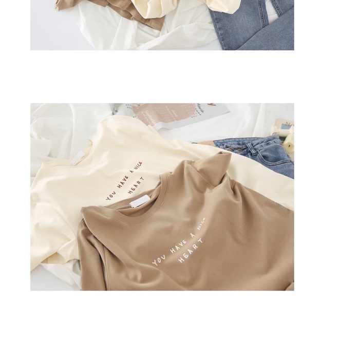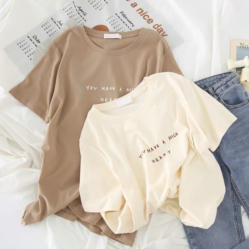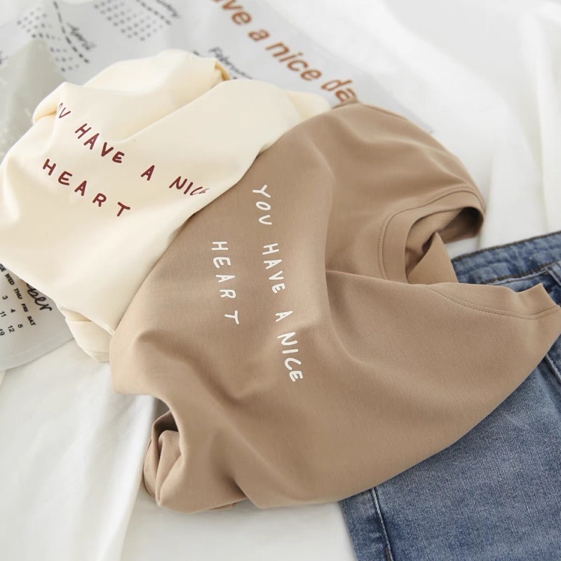 Seoul.Fluffy เสื้อยืดผู้หญิง สกรีนข้อความ Have a nice heart สไตล์มินิมอล ใส่สบาย มีสินค้าพร้อมส่ง
