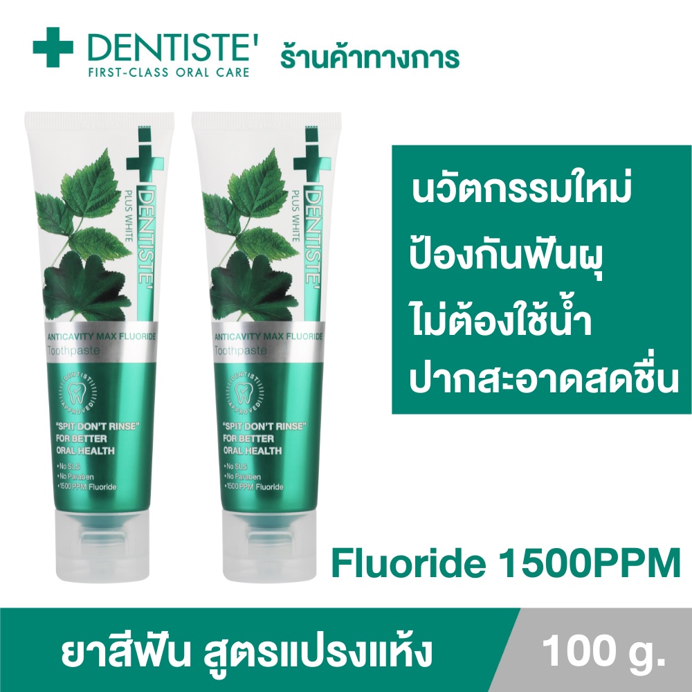 ประกอบด้วย Dentiste’ Anticavity Max 100 กรัม จำนวน 2ชิ้น ครั้งแรกของโลก! กับยาสีฟันรูปแบบใหม่ นวัตกรรมจากเดนทิสเต้ ที่จะเคลือบผิวฟันของคุณ ด้วย Max Fluoride โดยไม่ต้องใช้น้ำ สูตรฟลูออไรด์เต็ม 1,500 ppm ที่มีมากที่สุดในปริมาณที่ FDA รับรอง คุณสมบัติ ยาสีฟันชนิด “แปรงแห้ง” สูตรฟลูออไรด์ 1,500