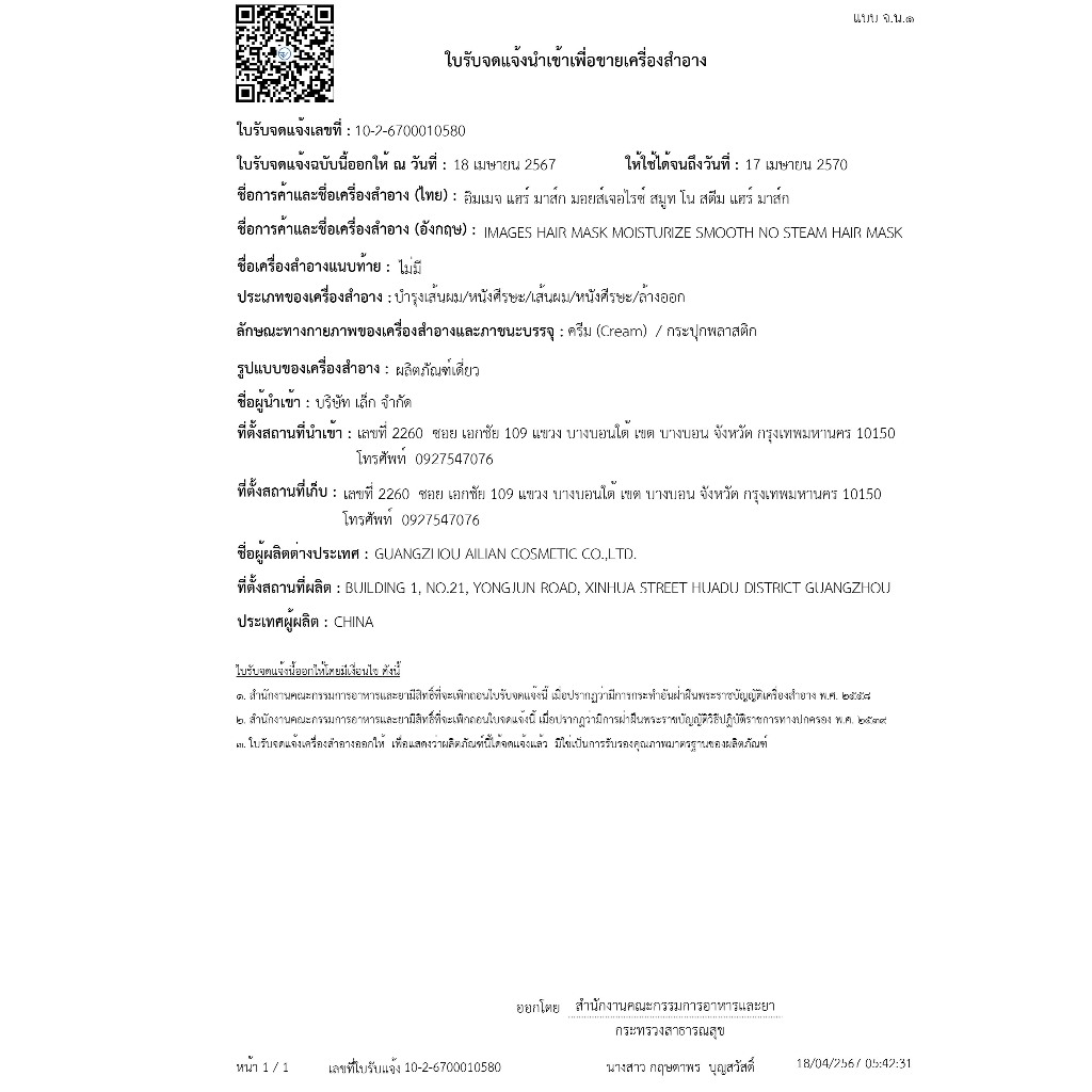 ... ครีมหมักผม สำหรับผมทำสี เหมาะสำหรับทุกสภาพเส้นผม สำหรับ ปัญหา ผมเสีย /ผมพัง /ผมช็อต /ผมแตกปลาย ไม่มีฟิล์มระเหย ซ่อมอาการแห้ง ให้ความชุ่มชื้น ผมยืดหยุ่น สดชื่นไม่เลี่ยน ซ่อมแซมผมระดับซาลอน ดูแลอย่างเข้มข้น เส้นผมเปล่งประกาย หวีเรียบและง่าย สาระสำคัญซึมเข้าไปในเส้นผม ลดผมฟู ซ่อมหลังย้อมสีดัดผม ช่วยซ่อมแซมผมเสีย ซ่อมแซมผมหลายผล ผมเรียบเนียนดี ผมเนียนนุ่มทุกเส้น หวีเรียบและง่าย สาระสำคัญซึมเข้าไปในเส้นผม ลดผมฟู ซ่อมหลังย้อมสีดัดผม ช่วยซ่อมแซมผมเสีย เงาสวยงาม บำรุงเส้นผม ผมเงางาม บรรเทาความแห้งกร้าน เนื้อบางเบาและล้างออกง่าย วิธีการใช้งาน:หลังสระผม เช็ดน้ำส่วนเกินออกจากเส้นผม ใช้ครีมที่พอเหมาะทากับเส้นผม นวดเบาๆ จนซึมได้อย่างเต็มที่ ใช้คู่กับพลาสติกห่อหรือหมวกคลุมอาบน้ำผลจะดีกว่า รอสักพักแล้วล้างออกด้วยน้ำ FDA-ใบรับจดแจ้งเลขที่ :10-2-6700010580 หมายเหตุ : สินค้ามีปัญหาสามารถเปลี่ยนหรือคืนสินค้าได้ภายใน 7 วัน ครับ 💥💥💥💥 โปรดอ่าน 💥💥💥💥 🔰🔰🔰🔰 กรณีได้รับสินค้า ผิดหรือ เคลมสินค้า 🔰🔰🔰🔰 ✅ กรณีได้รับสินค้าผิด สินค้า ชำรุจ สินค้าไม่ครบ 1. ให้ลูกค้าถ่ายรูป หรือวีดีโอ ส่งเข้ามาในแชทบล็อก แล้วแจ้งอาการ 2. ให้ลูกค้ากดทำคืนสินค้า ในระบบทางร้านจะคืนเงินให้ ❌ สำหรับลูกค้า ไปรีวิวในทางลบที่หน้าร้านก่อนทักแชทแจ้งอาการ ❎ทางร้านขอไม่เคลมให้ทุกกรณีนะจ่ะ 🛵🛵🛵🛵 การจัดส่งสินค้า 🛵🛵🛵🛵 ✈ ตัดรอบส่งสินค้า ทุก 09.30 น. ของทุกวัน หากคำสั่งซื้อหลังจากนั้น ่จะจัดส่งในวันถัดไป ✈ ทางร้านจัดส่งสินค้า วันจันทร์ - เสาร์ ✈ หยุดวันอาทิตย์ และ นักขัตฤกษ์ จะไม่มีการจัดส่งสินค้า ✈ ระยะเวลาการส่ง 3-7 วันขึ้นอยู่กับพื้นที่ 🙏🙏🙏🙏🙏🙏🙏ทางร้านขอขอบพระคุณทุกท่านที่อุดหนุน 🙏🙏🙏🙏🙏🙏🙏 #เคราตินผมตรง#ครีมหมักผม#ซ่อมผมที่ย้อมสี#ผมแห้งและชี้ฟู#บำรุงรากผม#ครีมหมักผม#เคราตินบำรุงผม#ครีมบำรุงผม#มาส์กผม#