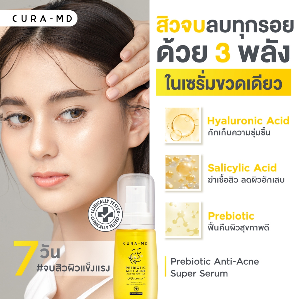[ขายดี] CURA-MD เซรั่มบำรุงผิว กระจ่างใส ลดสิว รอยดำ/แดง Prebiotic Anti-Acne Super Serum 30 มล.