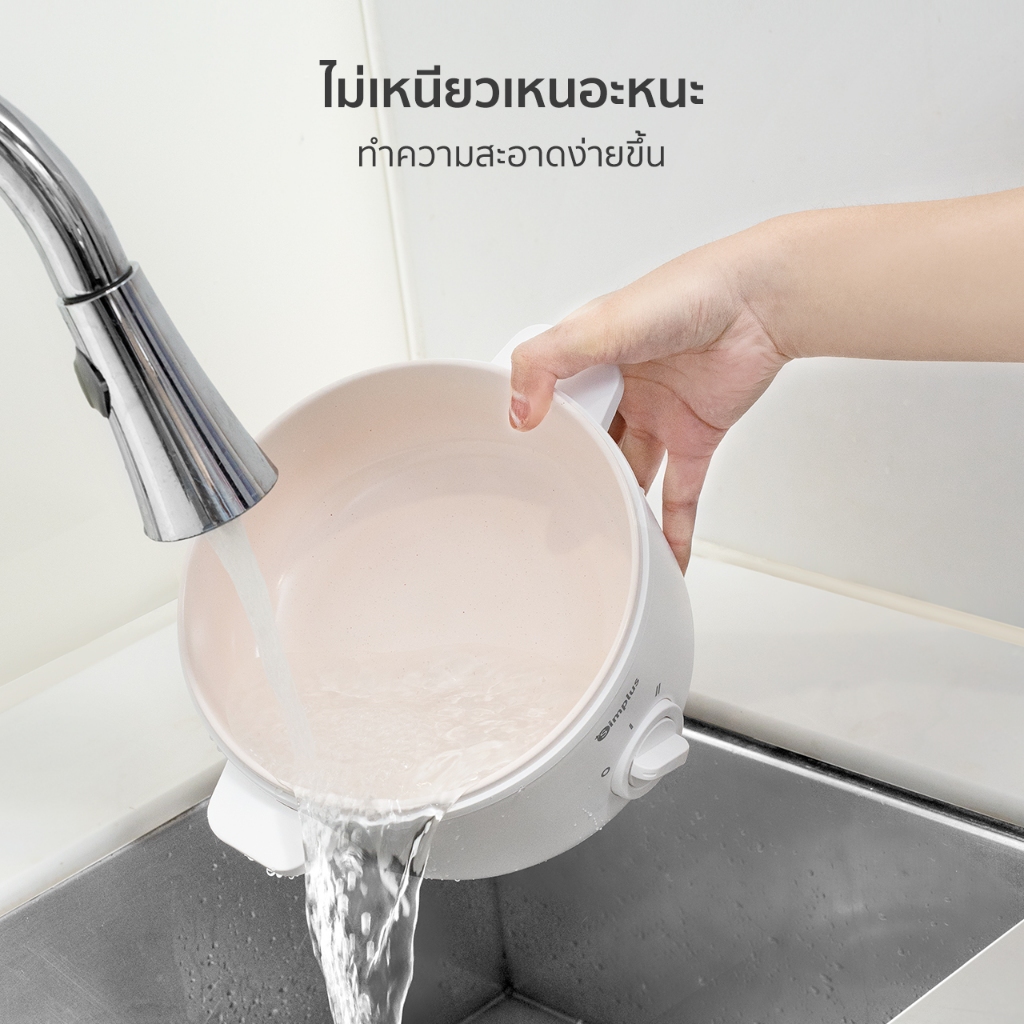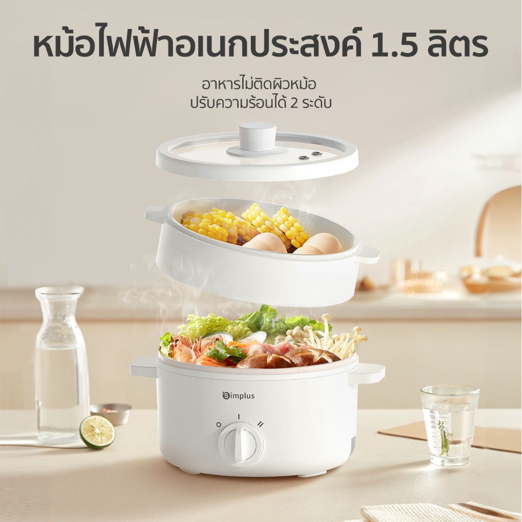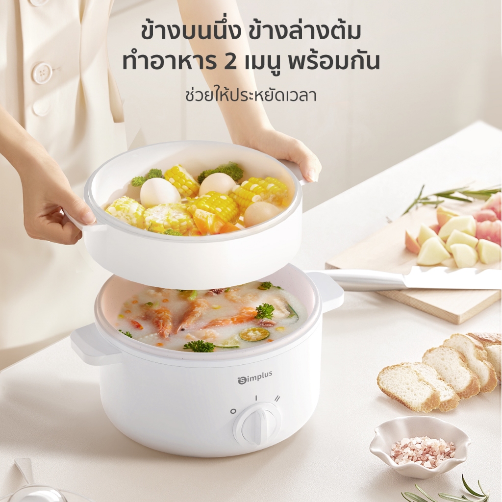 Simplus ชั้นนึ่ง หม้อไฟฟ้าอเนกประสงค์ 600W ไม่ติดหม้อ ควบคุมอุณหภูมิสองระดับ ความจุสูง DZGH003