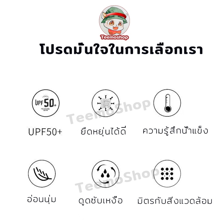 ... ยืดหยุ่นสูง - สวมใส่เย็นสบาย เวลาที่สวมใส่ไว้ จะรู้สึกเย็นกว่าถอดถึง 2 องศา - ระบายเหงื่อและความชื้นดี - เหมาะสำหรับใส่เล่นกีฬา และทำกิจกรรมกลางแจ้ง ปลอกแขน ปลอกแขนกันแดด แขนเสื้อ กันแดด กันแสง UV แบบสวมนิ้ว - ซับเหงื่อได้แห้งเร็ว - ป้องกันแดดยูวีได้ 99%, UPF 50+(UV-A/UV-B) - ส่วนผสมของ สารประกอบ ใน เส้นด้าย ดูดซับความร้อนได้ดีทำให้เย็นสบายเวลาสวมใส่ - สวมใส่นุ่มเบาเย็นสบาย และยืดหยุ่นได้ดี - ถักทอด้วยเทคโนโลยีพิเศษระบบ 3D ไม่มีตะเข็บไร้รอยต่อ แจ้งขนาดสินค้า 1.ขนาดแขน สั้น-ยาว-ผอม-อวบ ของแต่ละคน ทำให้เวลาสวมใส่ตำแหน่งปลอกแขนอาจสั้นยาวแตกต่างกันค่ะ 2.ความสั้นยาวอาจแตกต่างกันเนื่องจากโรงงานจัดส่งแต่ละล็อตมาไม่เหมือนกัน 3.สินค้าไม่แนะนำสำหรับคุณลูกค้าผู้ชายที่กล้ามใหญ่ๆค่ะ 4.สินค้ายึดได้ไม่เกิน รอบแขน 15-16 นิ้วค่ะ