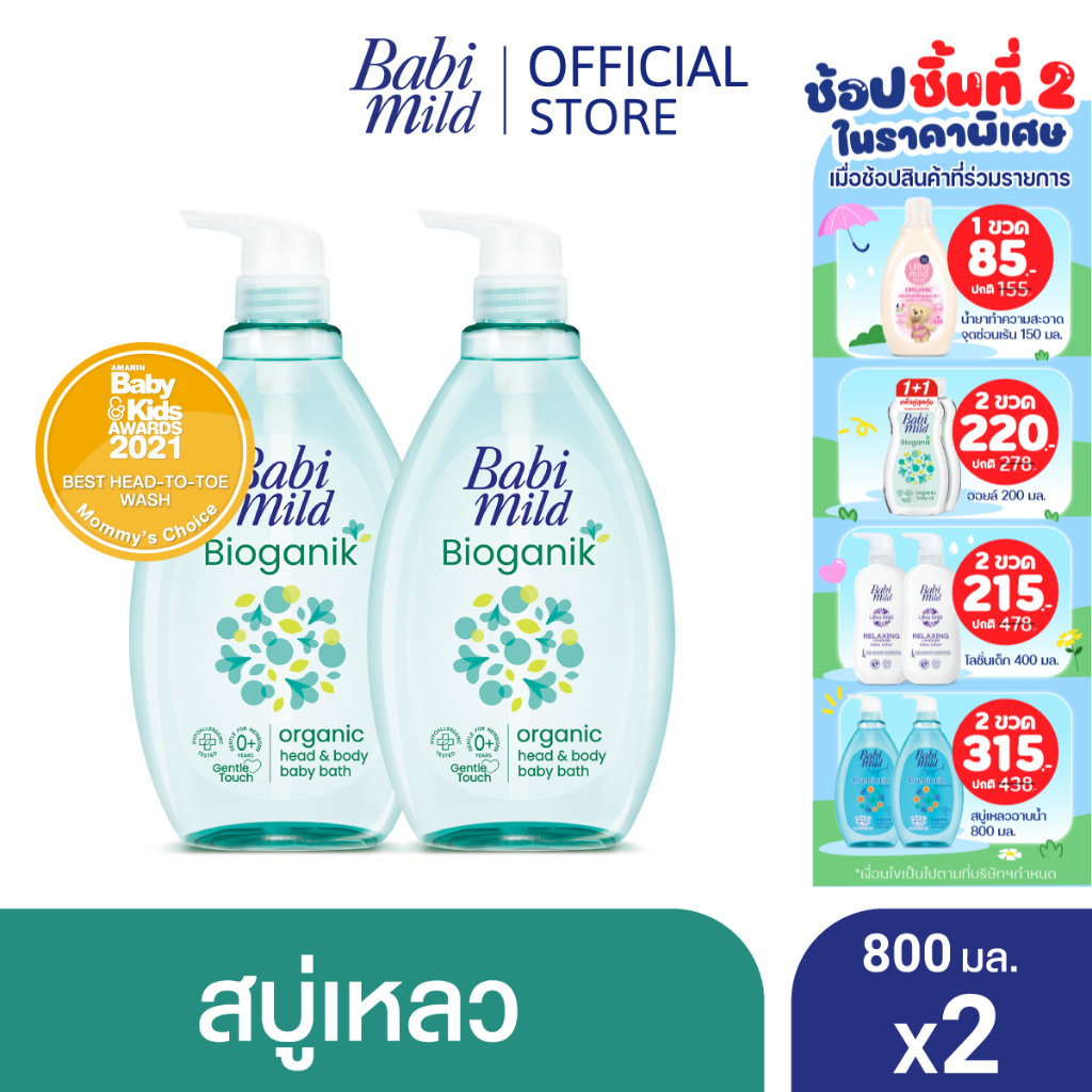 Babi Mild เบบี้ มายด์ สบู่อาบน้ำเด็ก อัลตร้ามายด์ ไบโอแกนิก สบู่เหลว อาบและสระ 800 มล. (แพ็ค2) เบบี้มายด์ อัลตร้ามายด์ ไบโอแกนิก สูตรอ่อนโยนที่สุดจากเบบี้มายด์ สบู่เหลว เบบี้มายด์ อัลตร้ามายด์ ไบโอแกนิก อ่อนโยนจากธรรมชาติ x2 ด้วยสารทำความสะอาดจากพืช และเอสเซ้นส์ออร์แกนิกคุณภาพสูง มาตรฐานระดับโล
