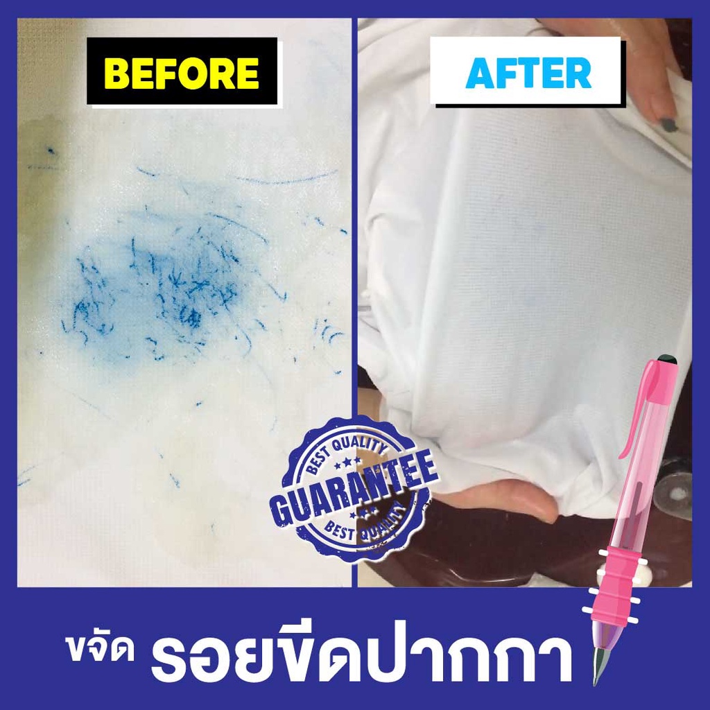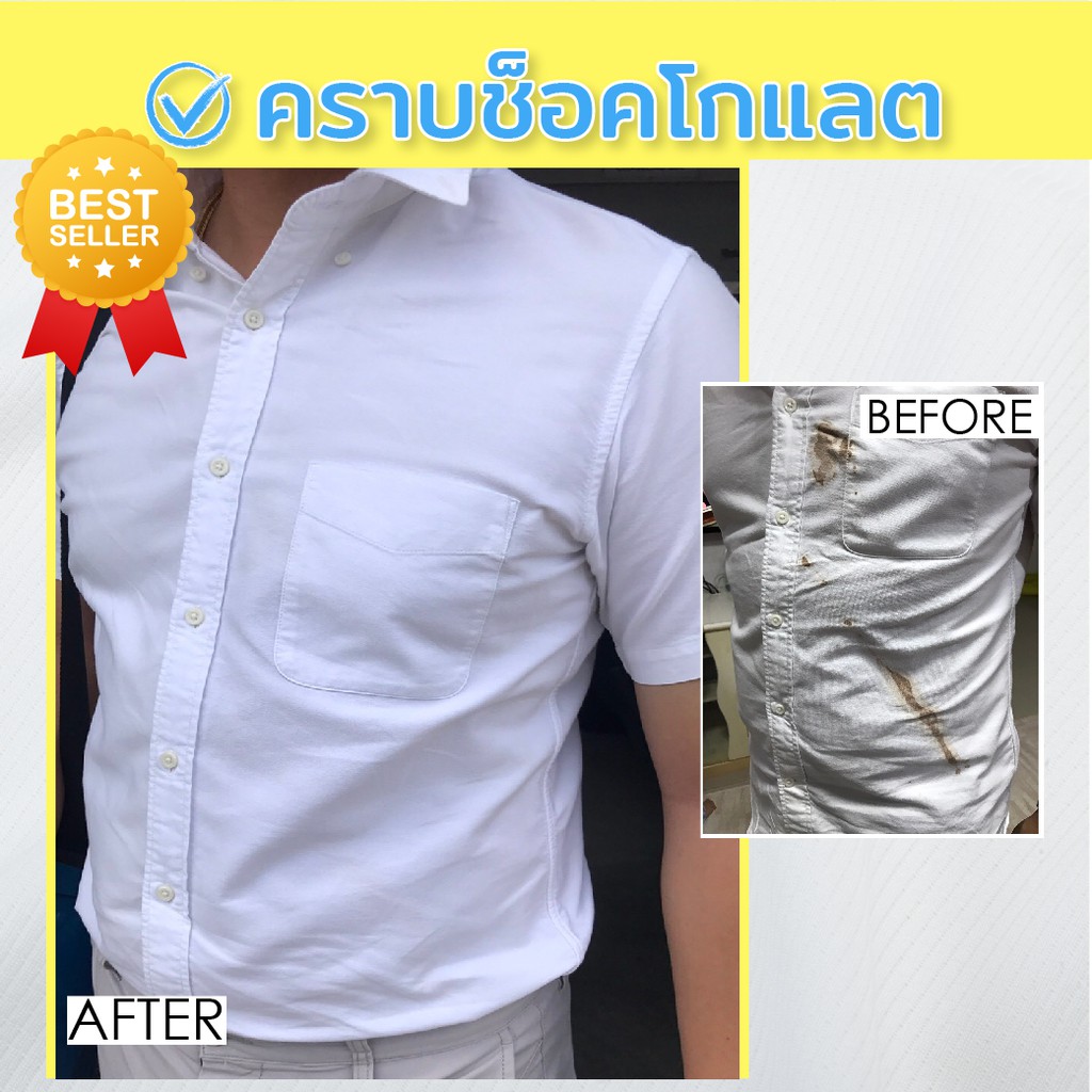น้ำยาขจัดคราบฝังลึกบนเสื้อผ้า ใช้ได้ทั้ง ผ้าสี และ ผ้าขาว ไม่เหม็น ไม่กัดมือ ไม่ต้องใช้เวลานาน น้ำยาสูตรเข้มข้นมาก ส่วนผสมสกัดจากธรรมชาติ นำเข้าจาก USA ขจัดได้แม้คราบฝังลึกที่ติดมาเป็นเวลานาน คราบเหลือง คราบรักแร้ คราบเหงื่อ คราบปากกา คราบเครื่องสำอางค์ คราบน้ำมัน คราบเชื้อรา อาหาร ฯลฯ ไม่มีคล