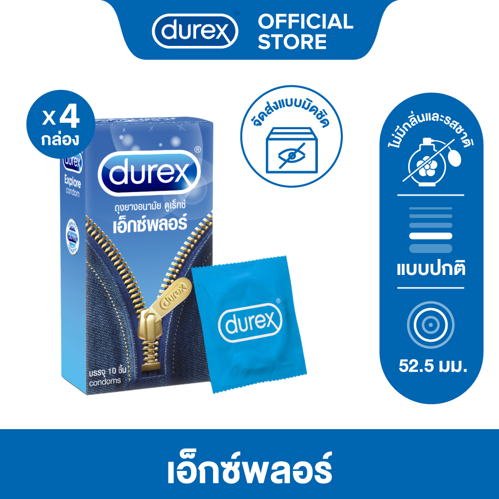 ดูเร็กซ์ ถุงยางอนามัย เอ็กซ์พลอร์ 10 ชิ้น จำนวน 4 กล่อง Durex ดูเร็กซ์ ถุุงยาง ถุงยางอนามัย สามารถใช้ร่วมกับเจลหล่อลื่นได้ condom #Durex #ดูเร็กซ์ #ถุงยาง #ถุงยางdurex #ถุงยางอนามัย #จัดส่งมิดชิด • ขนาด 52.5 มม. • ทรง Easy-On • ผลิตจากน้ำยาง • พร้อมเคลือบสารหล่อลื่น • ถุงยางอนามัยผิวเรียบ