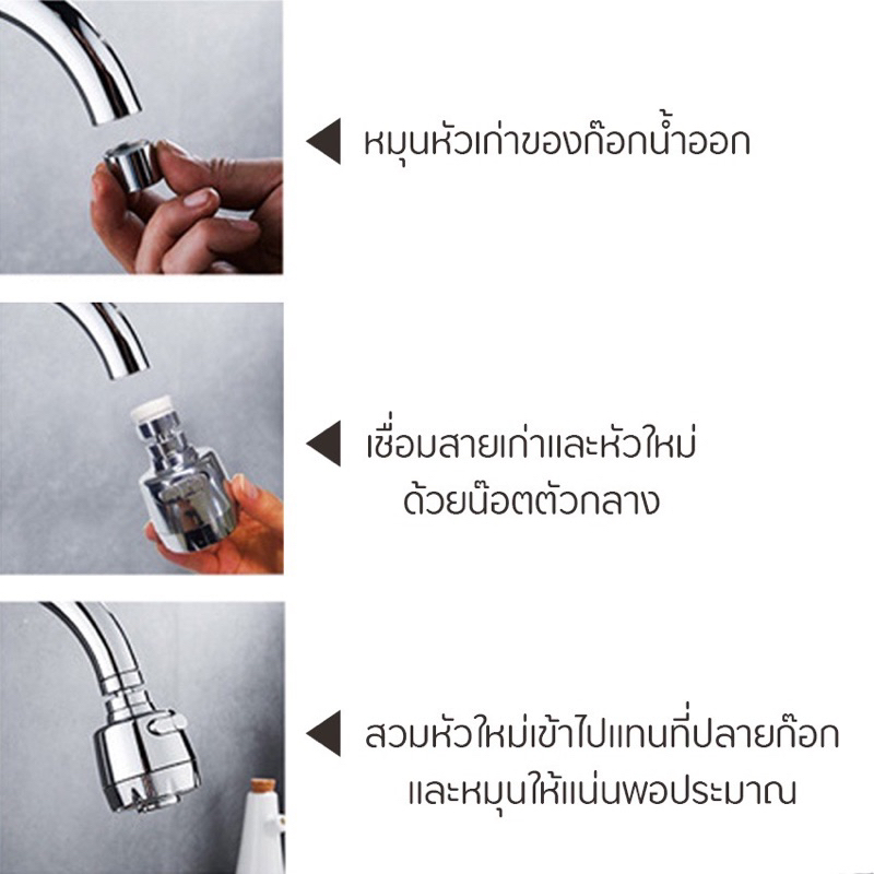 หัวก๊อกน้ำ หัวต่อก๊อกน้ำ อ่างล้างจาน ประหยัดน้ำ เพิ่มแรงดัน หมุน 360 องศา ปรับน้ำได้