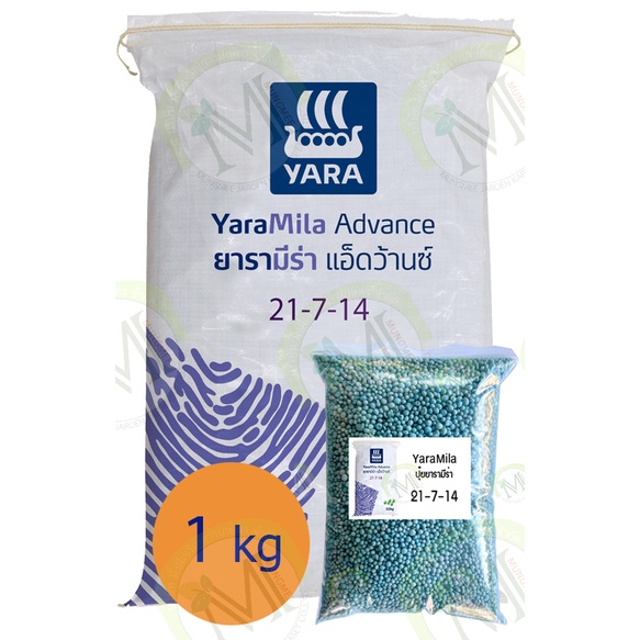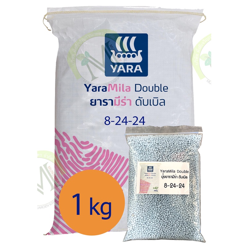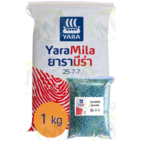 ... 5-7-7 = บำรุงต้น ใบเขียวสด เหมาะกับช่วงแรกของการเพิ่มดอก ผล 8-24-24 = เร่งดอก เร่งผล เหมาะกับช่วงผลผลิตออกแล้ว 1 รอบ และต้องการให้ผล ดอก เร่งออก 15-0-0 = ช่วยให้พืชสามารถเติบโตได้รวดเร็วและแข็งแรงและช่วยให้พืชสามารถต้านทานโรคและแมลงซึ่งเป็นปัญหาในการทำการเกษตรของเกษตรกร ยาราวีร่า 46-0-0 ยาราวีร่าคือปุ๋ยที่มีไนโตรเจน (N) เป็นส่วนประกอบในอัตราส่วนที่สูงมากถึงร้อยละ 46 โดยน้ำหนัก เป็นปุ๋ยเคมีมาตรฐานที่สำคัญที่สุด สูตรของยาราวีร่าคือ 46-0-0 เนื่องจากมีสัดส่วนไนโตรเจนสูงที่สุด จึงใช้เป็นแม่ปุ๋ยไนโตรเจน ยาราวีร่า 46-0-0 ใช้ประโยชน์เพื่อเป็นธาตุอาหารหลักของพืช โดยเฉพาะในช่วงแรกของการเพาะปลูกที่ต้องเร่งการเจริญเติบโตของพืชอย่างรวดเร็ว ทำให้พืชมีลำต้นยาว มีใบดก ใบใหญ่ ใบสีเขียวเข้ม น้ำหนักดี ยาราวีร่าแบบเม็ดโฟม เหมาะกับพืชไร่ทั่วๆไป เช่น ข้าว มันสำปะหลัง ข้าวโพด ยาราลีว่า ไนตราบอร์ 15-0-0 ยาราลีว่า ไนตราบอร์ เป็นปุ๋ยเม็ดสำหรับการหว่านทางดิน ซึ่งเป็นปุ๋ยแคลเซียมไนเตรทที่ช่วยให้พืชสามารถเติบโตได้รวดเร็วและแข็งแรงจากการทำงานร่วมกันของธาตุอาหารทั้งสองชนิด ที่สำคัญแคลเซียมที่มีอยู่ใน ยาราลีว่า ไนตราบอร์จะช่วยส่งเสริมการเติบโตของพืชให้เป็นไปอย่างมีประสิทธิภาพ ทำให้พืชสามารถต้านทานโรคและแมลงซึ่งเป็นปัญหาในการทำการเกษตรของเกษตรกร ยารามีร่า 15-15-15 ช่วยทำให้พืชเจริญเติบโตอย่างรวดเร็วและมีการพัฒนารากที่แข็งแรง ช่วยเพิ่มธาตุอาหารในดิน และช่วยพืชดูดซึมธาตุอาหารได้ดี กระตุ้นการเจริญเติบโตของลำต้นที่แข็งแรง และช่วยทำให้พืชมีความต้านทานโรคและแมลงโดยการเพิ่มความหนาของผนังเซลล์ชั้นนอก ธาตุโพแทสเซียมยังช่วยทำให้พืชทนต่อสภาพแห้งแล้งอีกด้วย เป็นผลดีต่อขนาดของใบ ผล และเมล็ด ส่งผลให้รสชาติของพืชดียิ่งขึ้น ช่วยขัดขวางการดูดซึมแร่ธาตุชนิดอื่น โดยเฉพาะธาตุแคลเซียมและธาตุแมกนีเซียม ยารามีร่า 16-16-16 ช่วยทำให้พืชเจริญเติบโตอย่างรวดเร็วและมีการพัฒนารากที่แข็งแรง ช่วยเพิ่มธาตุอาหารในดิน และช่วยพืชดูดซึมธาตุอาหารได้ดี กระตุ้นการเจริญเติบโตของลำต้นที่แข็งแรง และช่วยทำให้พืชมีความต้านทานโรคและแมลงโดยการเพิ่มความหนาของผนังเซลล์ชั้นนอก ธาตุโพแทสเซียมยังช่วยทำให้พืชทนต่อสภาพแห้งแล้งอีกด้วย เป็นผลดีต่อขนาดของใบ ผล และเมล็ด ส่งผลให้รสชาติของพืชดียิ่งขึ้น ช่วยขัดขวางการดูดซึมแร่ธาตุชนิดอื่น โดยเฉพาะธาตุแคลเซียมและธาตุแมกนีเซียม ยารามีร่า 13-13-21 กระตุ้นการเจริญเติบโตของลำต้นที่แข็งแรง และช่วยทำให้พืชมีความต้านทานโ