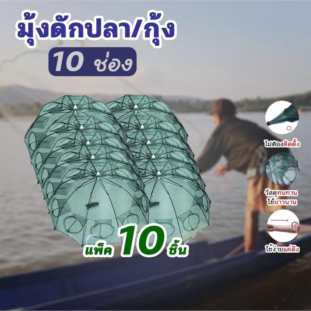 🌟WAT🌟แพ็ค10ชิ้น มุ้งดักปลา 4 6 8 10 ช่อง ตาข่ายดักปลา กระชังปลา ที่ดักปลา ที่ดักกุ้ง พับเก็บได้ A08