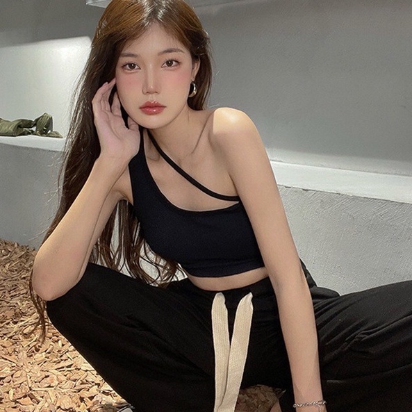 #165 บราเสื้อครอปสายเดี่ยวแบบข้างเดียวเก๋มากเกาหลีมาก สายเดี่ยวผ้าร่อง ไหมพรม COK