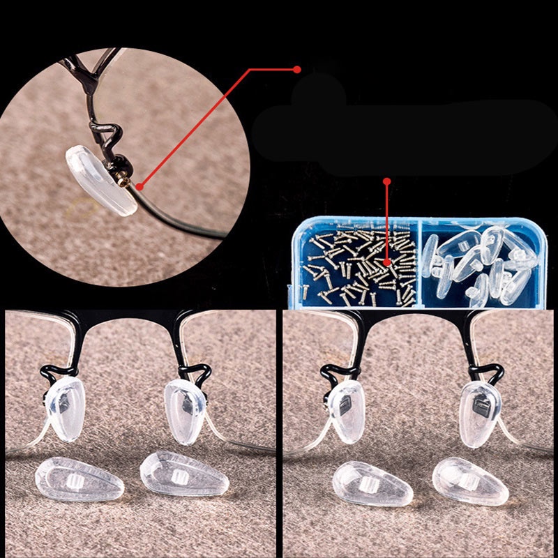 ... ้นจมูก -1x ผ้าเช็ดแว่น -1 คู่ x ซิลิโคนสวมขาแว่นเกี่ยวหู -1x กล่อง PVC เก็บพร้อมช่องแบ่ง -40 x เจลรองจมูก ซิลิโคนแบบต่างๆ #แป้นจมูกแว่นตา #ไขควงแว่นตา #แป้นรองจมูกแว่นตา