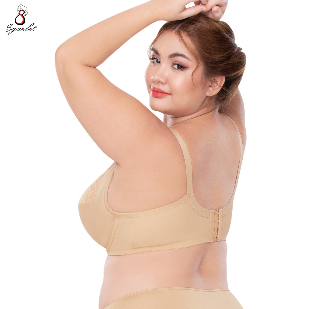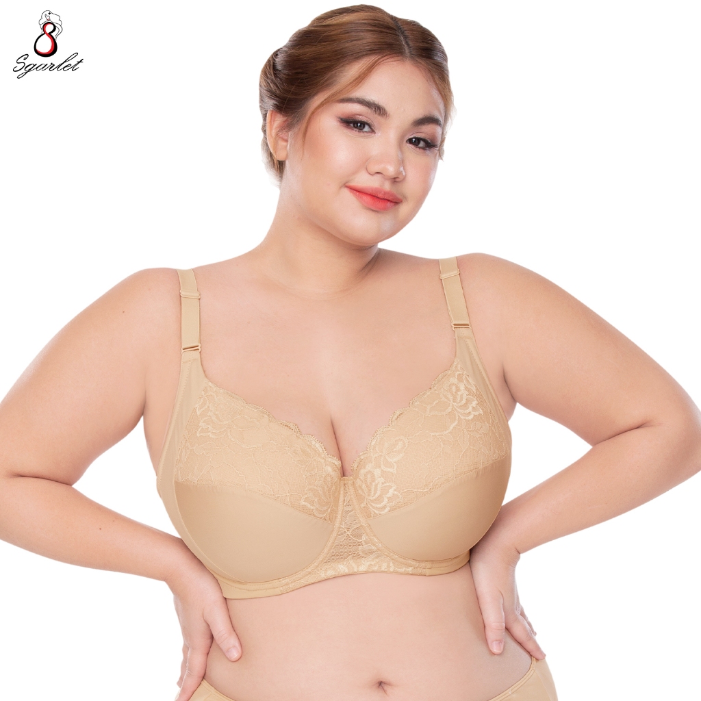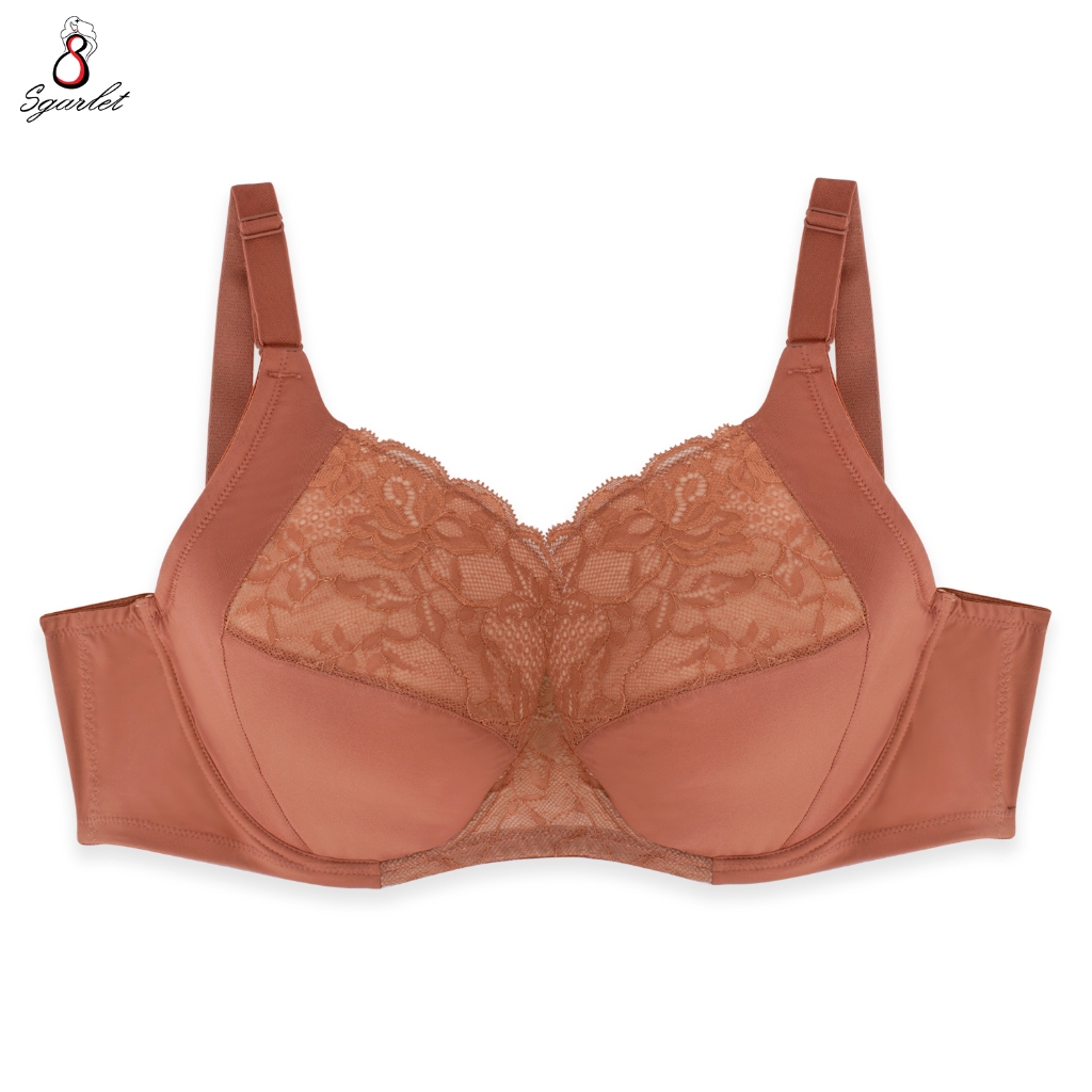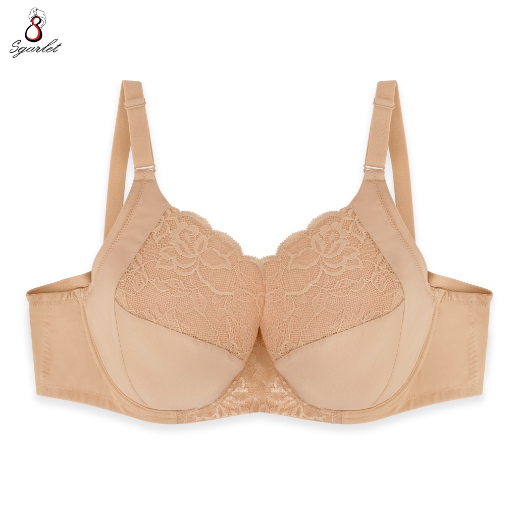 Sgarlet เสื้อในไซส์ใหญ่มีโครงเก็บทรงกระชับ ฟองน้ำบาง ผ้าลูกไม้ สีชาเย็น/เนื้อ MB1734