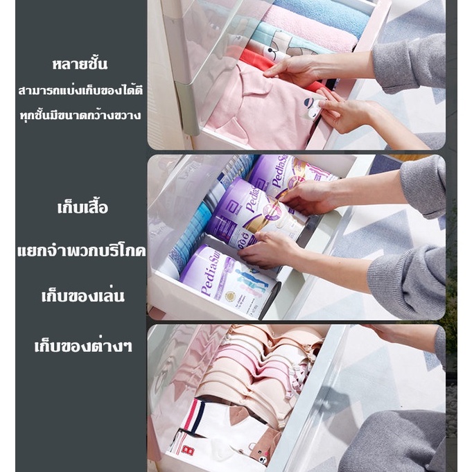 ... 4 ชั้น :กว้าง 50 cm * ลึก 40 cm * สูง 81 cm ขนาด 5 ชั้น :กว้าง 50 cm * ลึก 40 cm * สูง 100 cm ขนาด 6 ชั้น :กว้าง 50 cm * ลึก 40 cm * สูง 119 cm ผลิตจากเม็ดพลาสติกใหม่ โดยไม่มีส่วนผสมของเม็ดรีไซเคิล จึงไม่มีกลิ่นเหม็นอับผลิตจากเม็ดพลาสติกใหม่ FOOD GRADE ไม่เป็นมีส่วนผสมที่มีพิษ ไม่มีกลิ่น และไม่เป็นอันตรายต่อเด็กเล็กเมื่อสัมผัส ลิ้นชักขนาดใหญ่ จุของได้เยอะ เพื่อป้องกันการขโมยด้านข้างมีฝาข้างปิดมิดชิด ป้องกันมดแมลง หรือสัตว์ตัวเล็กเข้าไปด้านใน 1.ตู้ลิ้นชักเก็บของทำจากวัสดุที่เป็นมิตรต่อสิ่งเเวดล้อม 2.ชั้นจัดเก็บแบบแบ่งชั้น 3.ล้อเลื่อนในลิ้นชักเก็บเสียง 4.วัสดุของลิ้นชักมีความเหนียวเเละคงทน 5.สามารถรองรับน้ำหนักได้สูงสุดถึง 150 กิโลกรัม7.ตู้ลิ้นชักทำมาจากวัสดุที่เป็นมิตรกับสิ่งแวดล้อม 6.เก็บของได้อย่างมั่นใจเเละเป็นเฟอร์นิเจอร์ในบ้านได้ด้วย เคล็ดลับ: สวัสดีลูกค้าที่เคารพ โปรดตรวจสอบว่าอุปกรณ์เสริมขาดหายไปหรือเสียหายหลังจากได้รับสินค้า หากเงื่อนไขเหล่านี้เกิดขึ้น โปรดอย่าประกอบ! ติดต่อเราทันที เราจะจัดการปัญหาของคุณทันที ขอบคุณสำหรับความร่วมมือ ฉันขอให้คุณช้อปปิ้งมีความสุข! *ลูกค้ากรุณาตรวจดูขนาดและแบบของสินค้า ก่อนการสั่งซื้อสินค้าค่ะ