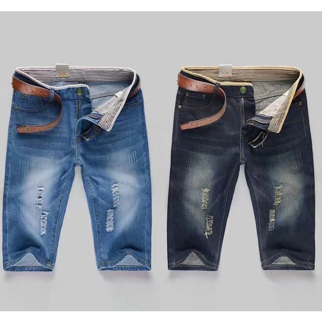 2021 New shorts Jeans ยีนส์ขาสั้น ผ้ายืดฟอกนิ่ม สีมิดไนด์-สนิมน้ำตาล มีริม ไซส์28-40
