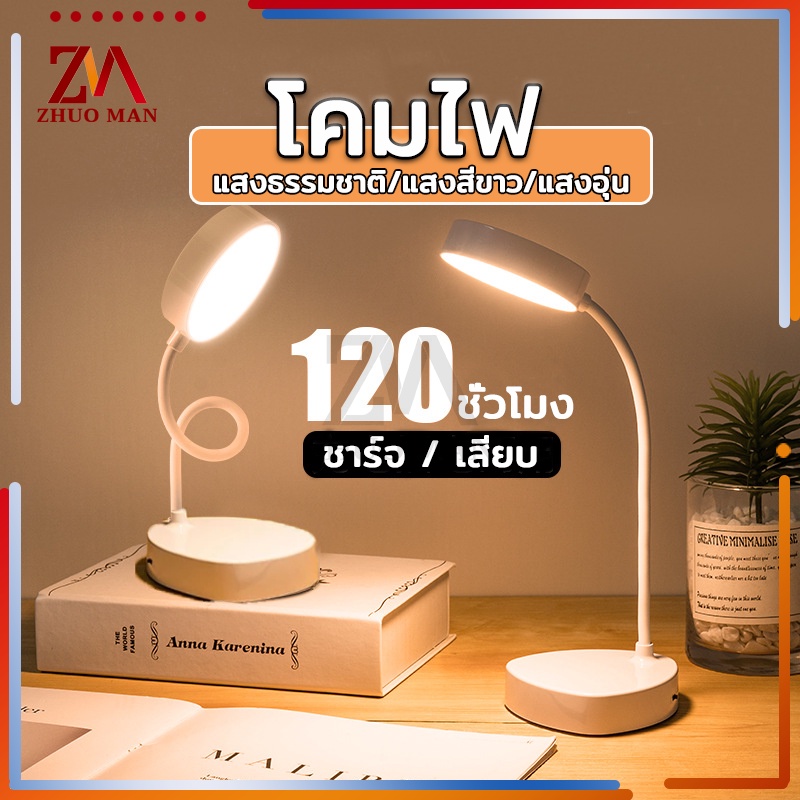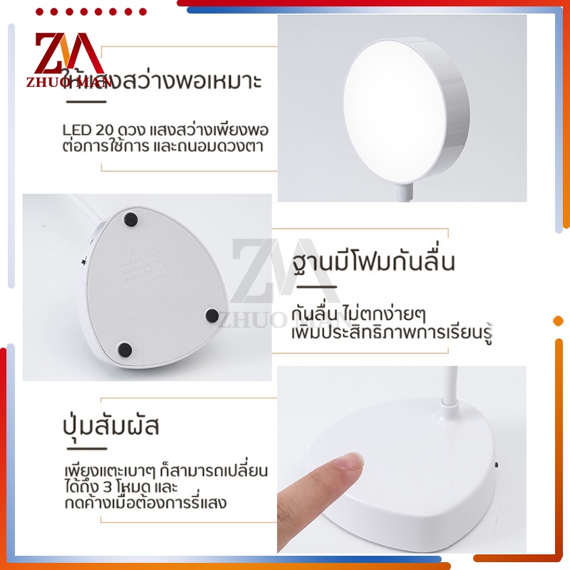 โคมไฟตั้งโต๊ะ โคมไฟหัวเตียง led ปรับโคมไฟอ่านหนังสือ แสงได้3สี พับเก็บได้