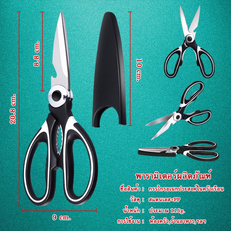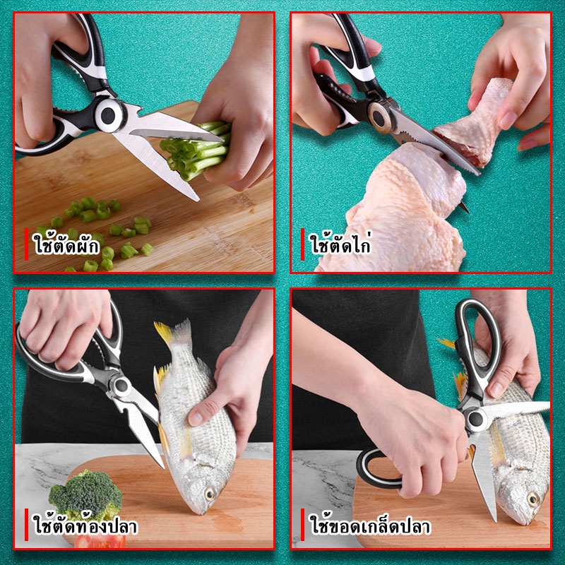 กรรไกรอเนกประสงค์ 【คุณสมบัติของสินค้า】 - ใบมีดคมมาก สามารถใช้ตัดเนื้อสัตว์ เช่น สัตว์ปีก, ตัดเนื้อ, ไก่, กระดูกสัตว์ปีก, ปลา, หรือจะเป็นพวก ผัก สมุนไพร, ฯลฯ - นอกจากนี้ยังสามารถใช้เป็นเครื่องปอกเปลือก เช่น ขูดเกล็ดปลา - ผลิตจากสแตนเลสคุณภาพสูงทนทานและกันสนิม -เหมาะสำหรับใช้ในครัว 【วิธ