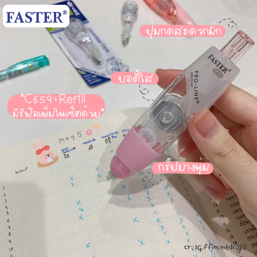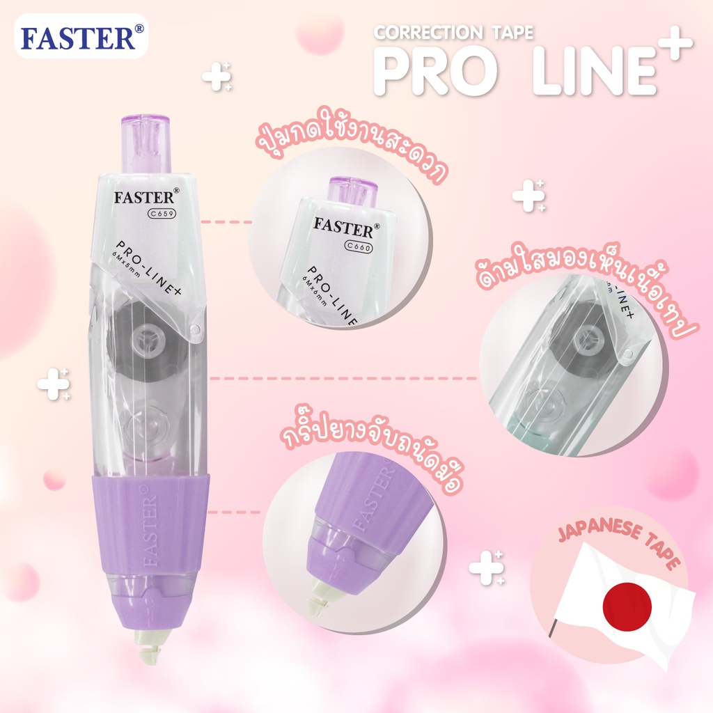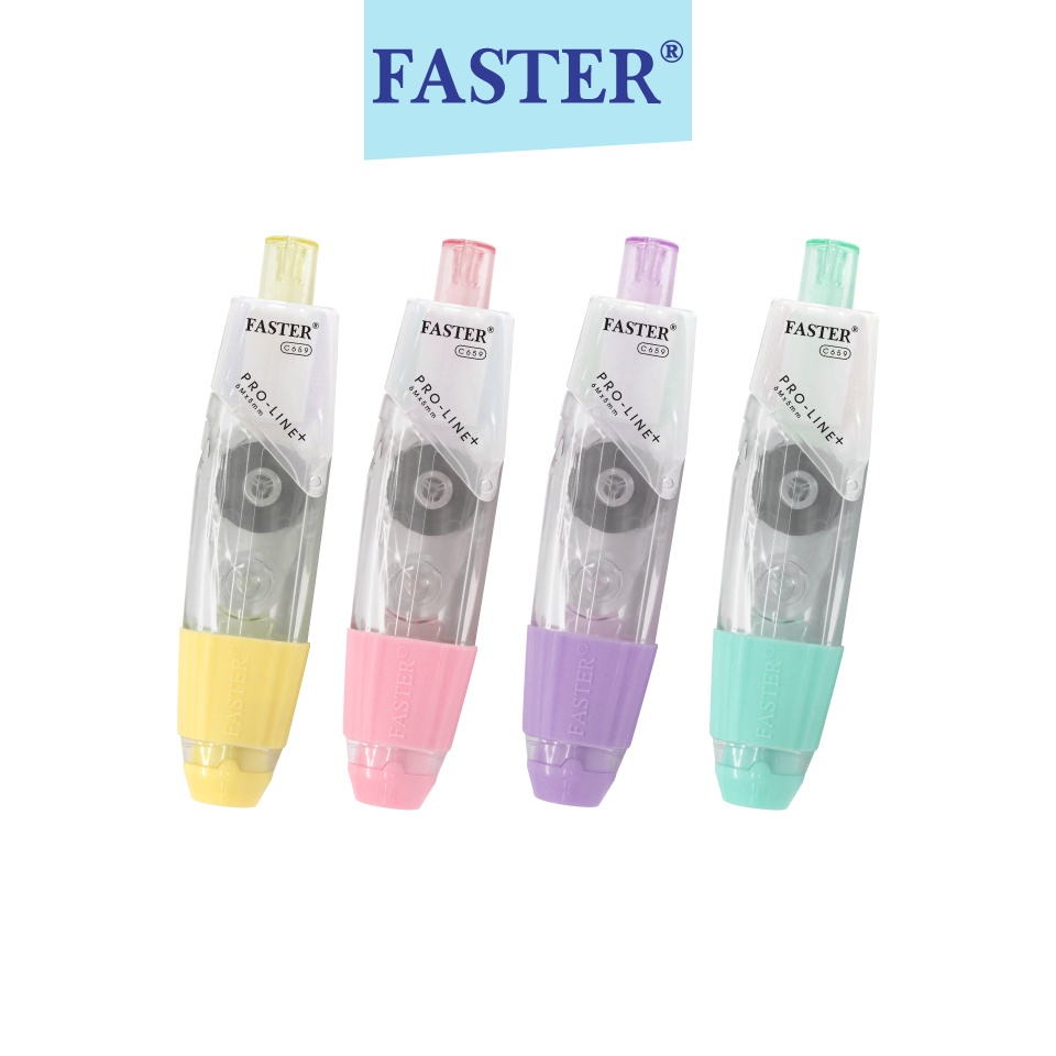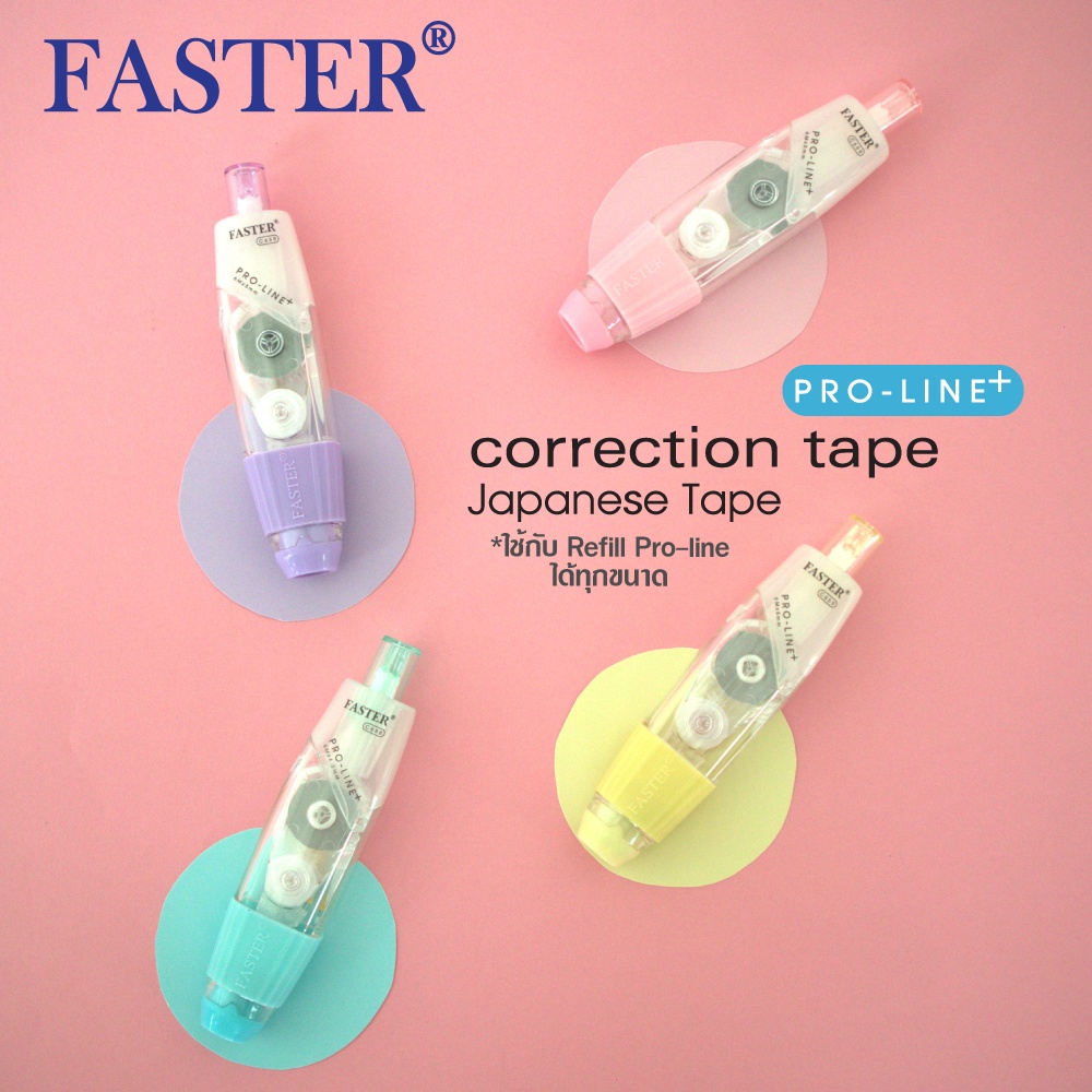 (เลือกสีได้) เทปลบคำผิด FASTER รุ่น Pro Line Plus ฟาสเตอร์ เปลี่ยนไส้เทปได้ กว้าง 4.2 /5/ 6 มม. ยาว 6 ม. [Pro Line Plus]