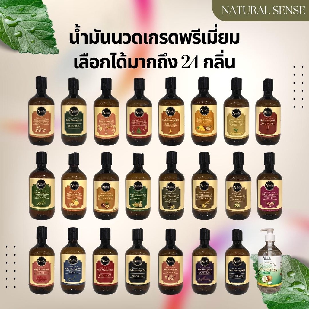 ... ่วยให้คุณผ่อนคลาย ✅ มีวิตามินช่วยในการบำรุงผิว นวดง่าย ผ่อนแรง ไม่เหนียวเหนอะหนะ ✅ Base Oil จะผสานไปด้วยน้ำมันถึง 4 ชนิด คือน้ำมันรำข้าว น้ำมันมะพร้าว น้ำมันดอกทานตะวัน น้ำมันมะกอก . 🌬 1.Lavender (ลาเวนเดอร์) 🌬 2.Sakura (ซากุระ) 🌬 3.Relaxing (รีแลกซ์) 🌬 4.Romance (โรแมนซ์) 🌬 5.Fresh (เฟรซ) 🌬 6.Rose (กุหลาบ) 🌬 7.Orchid (กล้วยไม้) 🌬 8.Jasmine (ดอกมะลิ) 🌬 9.Sweet Baby (สวีทเบบี้) 🌬 10.Calming (คลามมิ่ง) 🌬 11.Herbal Balsam (สมุนไพร) 🌬 12.Passion Fruit (เสาวรส) 🌬 13.Orange & Ginger (ส้มขิง) 🌬 14.Lemongrass & Eucalyptus (ตะไคร้&ยูคาลิปตัส) 🌬 15.Red Wine (ไวน์แดง) 🌬 17.White Tea (ชาขาว) 🌬 18.Mango & Coconut (มะม่วงมะพร้าว) 🌬 19.Magnolia (ดอกแมกโนเลีย) 🌬 20.Blessing (เบลสซิ่ง) 🌬 21.Sweet Home (สวีทโฮม) 🌬 22.Happy Time (แฮปปี้ไทม์) 🌬 23.Chocolate (ช็อคโกแลต) 🌬 24. Base Oil (เบสออย) . ✅ New กลิ่นใหม่ ✅ 🌬 25. Eucalyptus (ยูคาลิปตัส) 🌬 26. Champaka (จำปา) 🌬 27. Ylang Ylang (กระดังงา) . #massageoil #bodyoil #naturalmassageoil #naturalsense #น้ำมันนวด #น้ำมันนวดสปา #น้ำมันนวดตัว #น้ำมันนวดอโรม่า