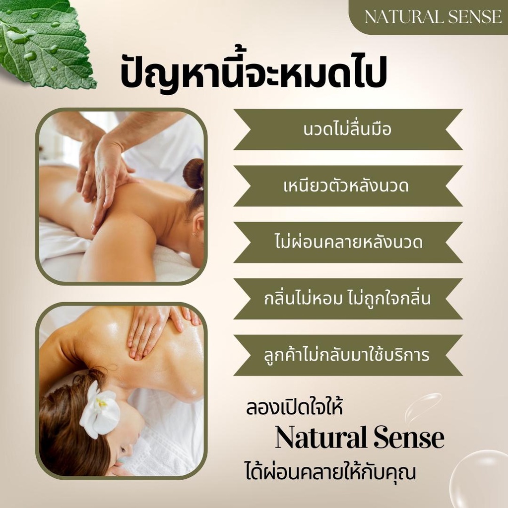 น้ำมันนวดอโรม่า น้ำมันธรรมชาติ เกรดสปาพรีเมี่ยม นวดง่าย ไม่เหนียวตัว Natural Sense Massage Oil