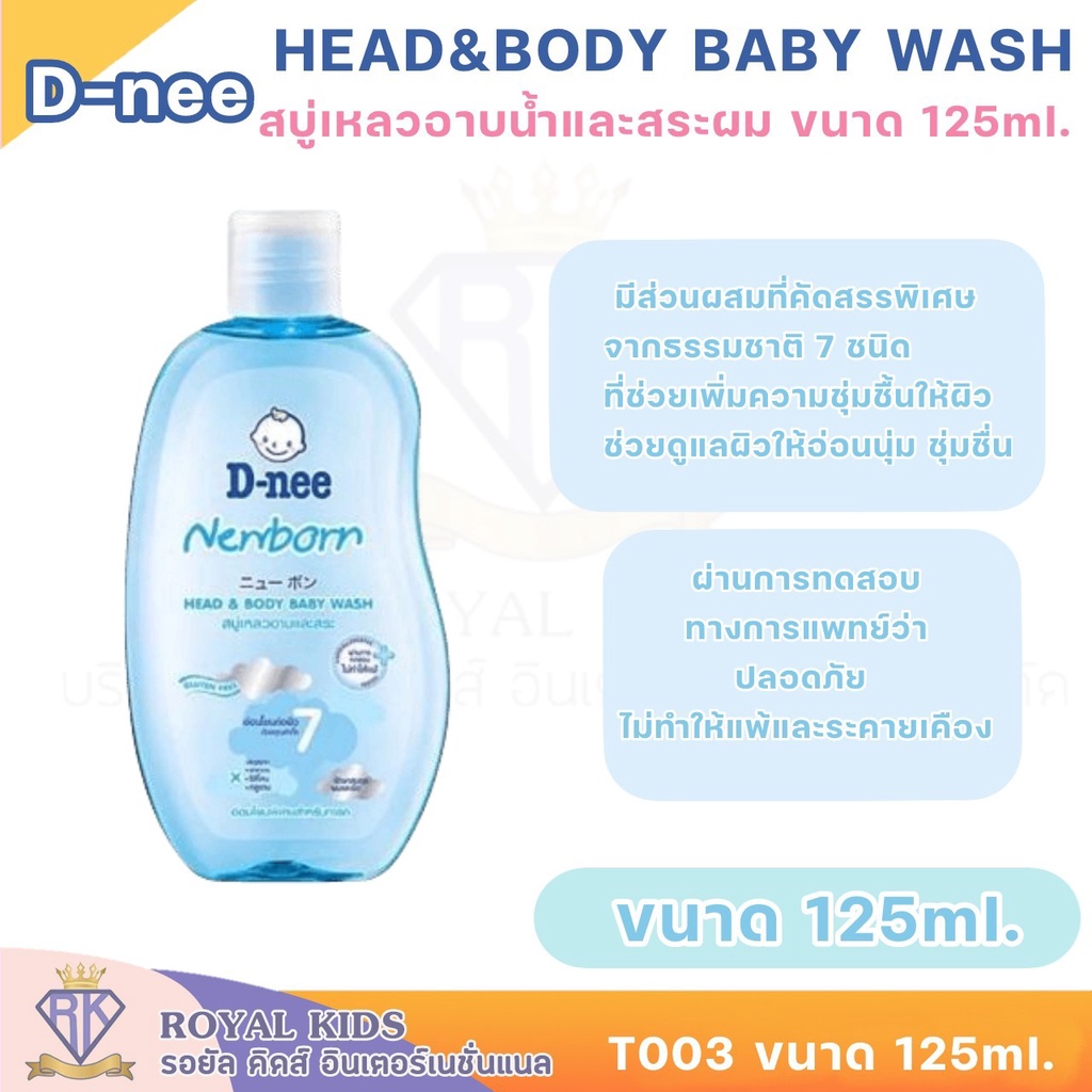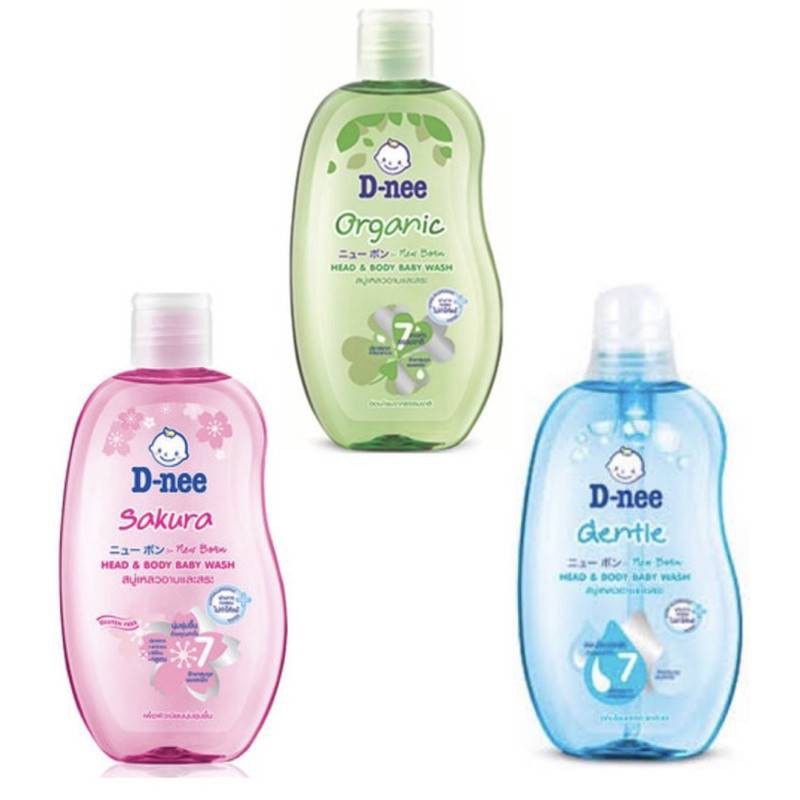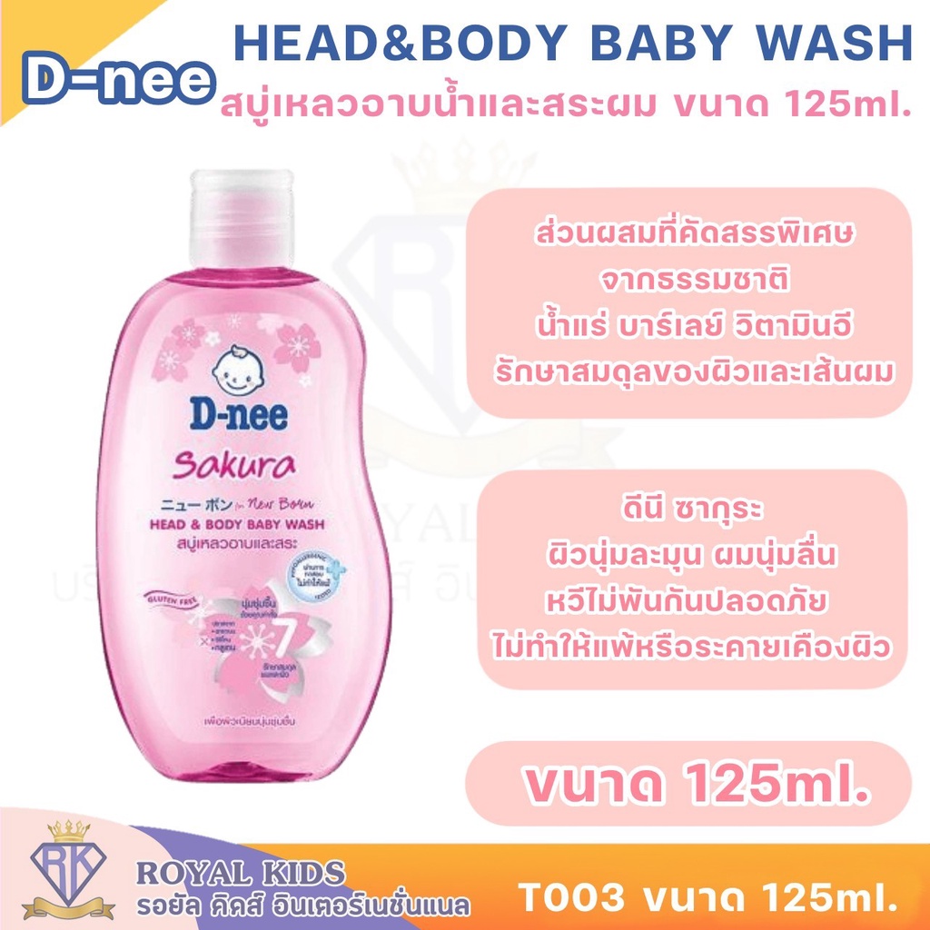 T003 D-Nee ดีนี่ สบู่และยาสระผมเด็ก สบู่เหลวอาบและสระสำหรับเด็ก Sakura,Organic,Newborn ขนาด 125มล.(1 ขวด)