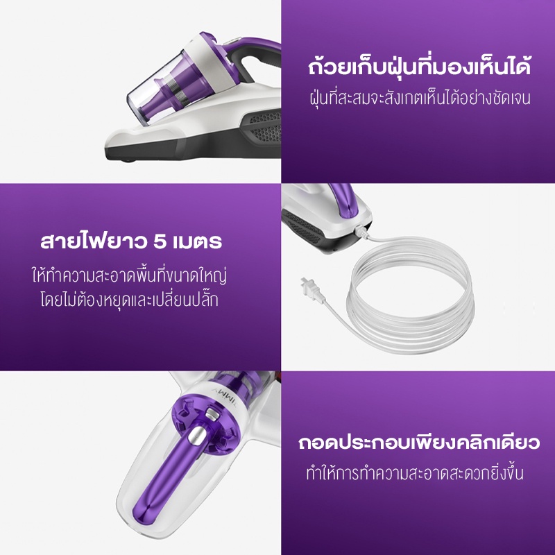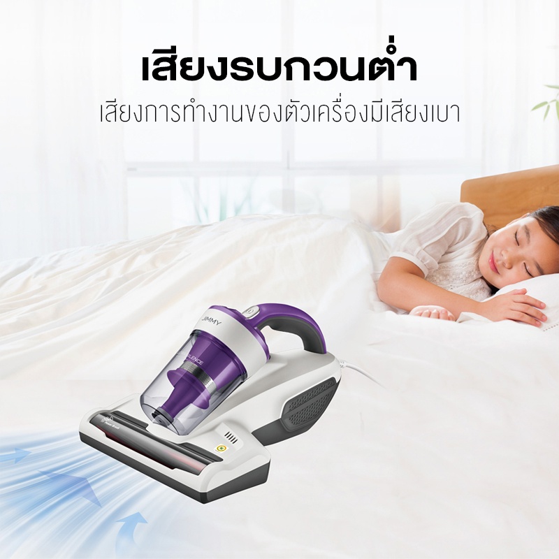 Jimmy Anti-mite Vacuum Cleaner JV12 มอเตอร์ความแม่นยำสูง 400W ทรงพลัง มอเตอร์ความแม่นยำสูงที่ได้รับการอัพเกรดรุ่นใหม่ให้พลังดูดที่ทรงพลังยิ่งขึ้น และลดเสียงรบกวน ประหยัดพลังงาน หัวดูดกว้าง 220 มม.ประสิทธิภาพได้รับการปรับปรุงอย่างมากในการทำความสะอาดเตียงในเวลาไม่กี่นาที ผลการกำจัดไรฝุ่นและสารก่อภูมิ