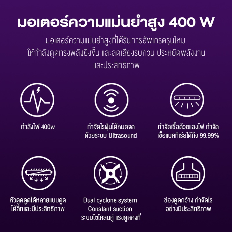 ... แพ้ ผ่านการทดสอบและรับรองโดยหน่วยงานมืออาชีพ อัตราการกำจัดไรฝุ่น 99.99% แปรงม้วนจดสิทธิบัตร การกรีดที่ลึกและแข็งแรง การกรองแบบไซโคลนคู่ ลดการอุดตัน ถ้วยเก็บฝุ่นที่มองเห็นได้ความจุขนาดใหญ่ 0.4L * ยี่ห้อ: JIMMY * รุ่น: JV12 * กำลังไฟสูง 400W * สายไฟ: 5M * อัตราการกำจัดไร 99.99% * พลังดูดสูง 10000Pa * ดูดได้ลึกถึง 30 cm * ตัวกรองตาข่ายสแตนเลสแบบหนา ทนทาน * ระบบการกรองแบบไซโคลน การกรองแบบหลายชั้นสามารถแยกสารก่อภูมิแพ้ของไรฝุ่นและฝุ่นละเอียดออกจากอากาศได้อย่างมีประสิทธิภาพ * ความจุถ้วยเก็บฝุ่น: 0.4L * ช่องดูดกว้าง 220 มม. * ขนาดบรรจุ 40.7*30*23.8CM * น้ำหนักสุทธิ 3.0 kg *เสียงทำงาน 75dBA *ไม่สามารถปรับระดับความแรงในการดูดได้ --------------------------- • • • เงื่อนไขการรับประกัน • • • ◾1.สินค้าของแท้ 100% รับประกันศูนย์ไทย 2ปี *รับประกันแบตเตอรี่ 1 ปี* เงื่อนไขการรับประกัน บางกรณีอาจมีค่าใช้จ่ายเพิ่มเติมค่ะ ◾2.กรณีสั่งสินค้าผิดรุ่น ผิดสี ทางร้านขอสงวนสิทธิ์ไม่รับเปลี่ยนหรือคืนสินค้า รบกวนตรวจสอบให้ถี่ถ้วนก่อนกดสั่งนะคะ ◾3.กรณีเครื่องมี รอยตำหนิ / หน้าจอแตก / ตัวเครื่องมีรอยบุบ / แตก ต้องแจ้งภายใน 24 ชม. ** พร้อมภาพถ่าย วิดีโอตอนแกะกล่องสินค้า ** หากไม่มีหลักฐาน ข้อมูลตามที่ทางร้านแจ้งไปข้างต้น ทางร้านขอสงวนสิทธิ์ในการ เคลมสินค้า/เปลี่ยนสินค้าใหม่ ทุกกรณีค่ะ !! ◾4.กรณีใส่ที่อยู่ผิด ทางร้านไม่สามารถแก้ไขให้ได้ ลูกค้าต้องยกเลิกแล้วสั่งสินค้าเข้ามาใหม่ ◾5.ผู้ซื้อต้องแสดงรายละเอียดการสั่งซื้อและเลข SN ของสินค้า หากข้อมูลไม่ครบถ้วน ทางร้านขอสงวนสิทธิ์ ถือเป็นที่สิ้นสุดการรับประกันสินค้า **การประกันสินค้านี้ไม่รวมถึงอุปกรณ์ต่อพ่วง หรือของแถมอื่น ๆ ที่มีมาในกล่อง เช่น สายชาร์จที่แถมมาในกล่องปลั๊กรุ่นต่างๆ ◾6.การรับประกันสินค้าไม่ครอบคลุมถึงสินค้าที่เป็นของแถม ในช่วงระยะเวลารับประกันคุณต้องจ่ายค่าขนส่งด้วยตัวเอง ◾7.สภาพสินค้าที่เกิดความเสียหายจากผู้ใช้ เช่น แตก ชำรุดบุบ ไหม้ มีคราบน้ำ คราบสนิม เป็นต้นถือว่าสิ้นสุดการรับประกัน ◾8.ไม่รับเปลี่ยนหรือคืนสินค้าที่เกิดจากการใช้งานที่ผิดวิธี หรือการสั่งซื้อที่เกิดความผิดพลาดของลูกค้า ไม่ว่ากรณีใด ถ้าอุปกรณ์เสริมเมนบอร์ดเสียหายจากการใช้งานของลูกค้าเองหรือหากอยู่ในระยะเวลารับประกัน แต่ต้องเปลี่ยนอุปกรณ์เสริมเมนบอร์ด ลูกค้าจะต้องจ่ายค่าซ่อมอุปกรณ์และค่าขนส่งเอง ◾9.กรณีสินค้ามีปัญหาด้านการจัดส่งหรือสูญหาย รบกวนแจ้งกลับเพื่อตรวจสอบภายใน 15 วันหลังมีการส่งออก ทางร้านไม่สามารถ ตรวจสอบหาเกินเวลาที่กำหนด และขอสงวนสิทธิ์ในการชดเชยทุกกรณี ◾10. ส