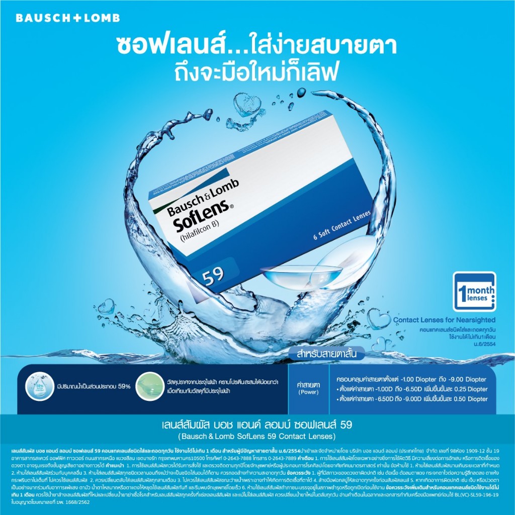 Bausch & Lomb : SofLens 59 คอนแทคเลนส์รายเดือน (1 Box : 3 Pairs)