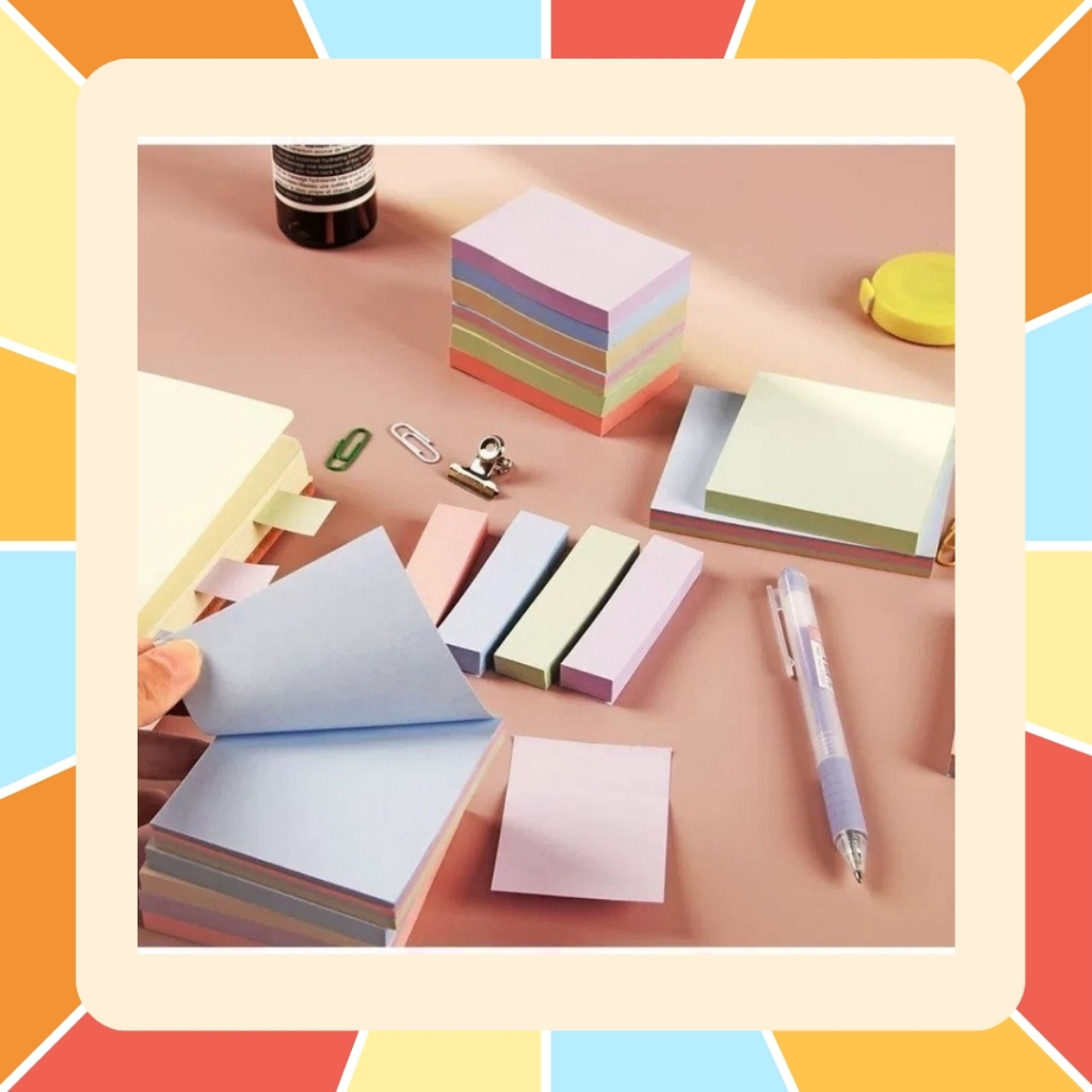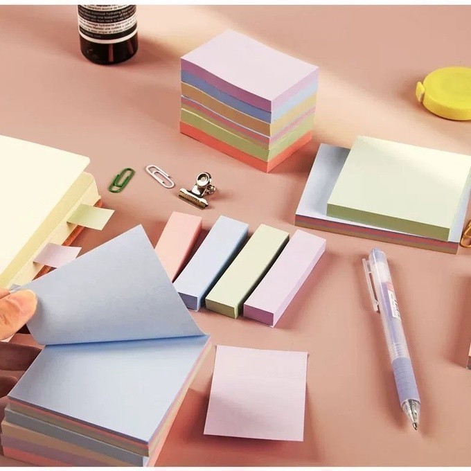 กระดาษโน้ต มีกาวในตัว กระดาษโน๊ต sticky note กระดาษสีพาสเทล 100 แผ่น มีหลายสี หลายแบบ หลายขนาด