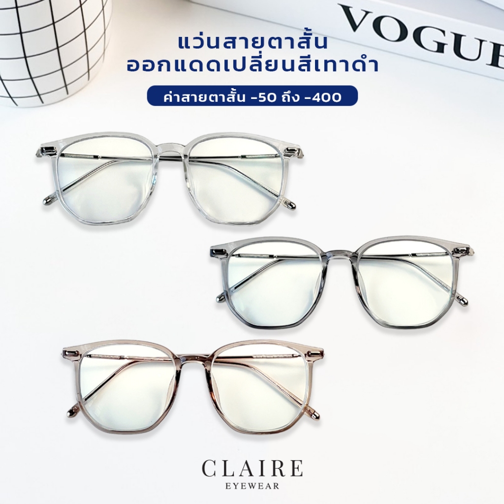 (แว่นสายตาสั้น) CLAIRE LM ละมุน : แว่นสายตาสั้นกรองแสงออกแดดเปลี่ยนสีเทาดำ