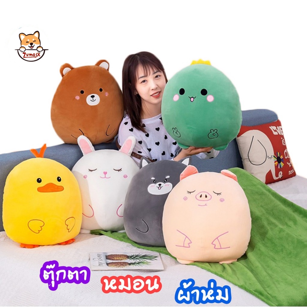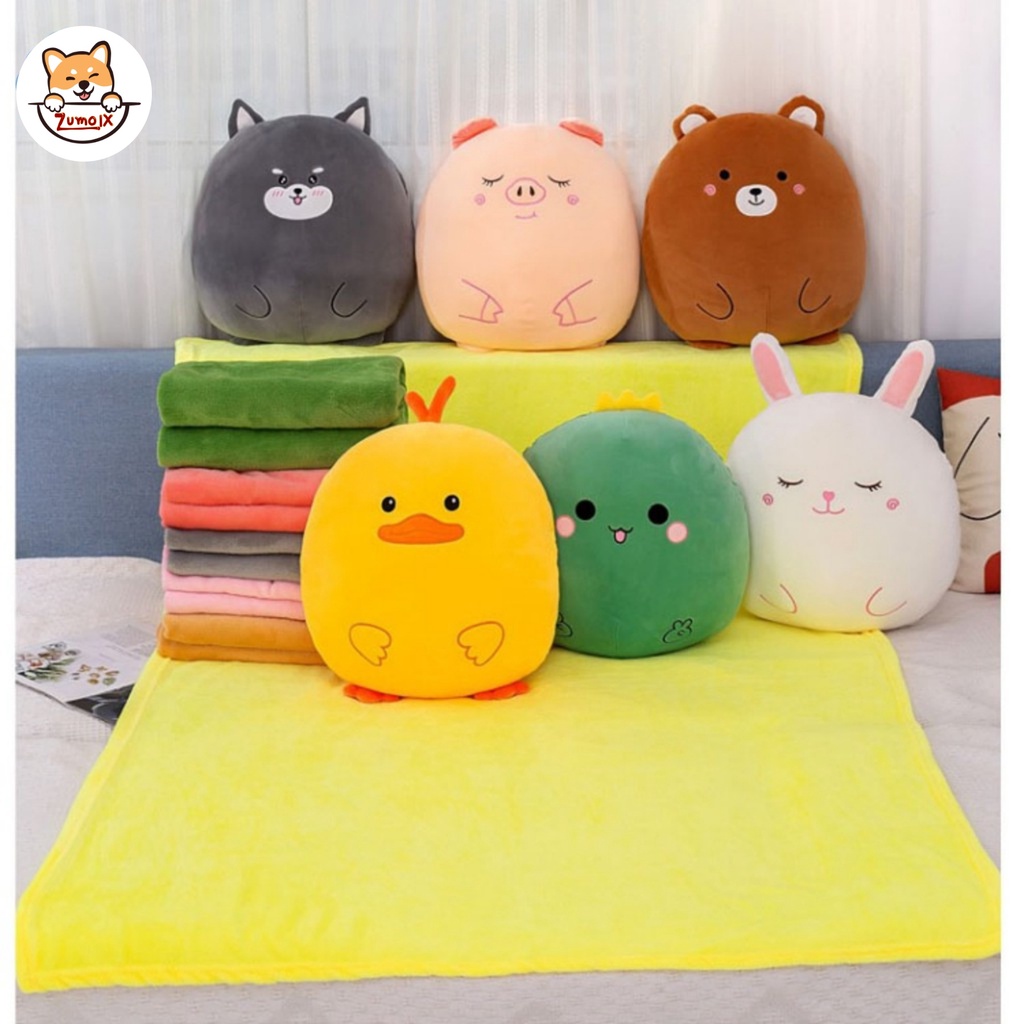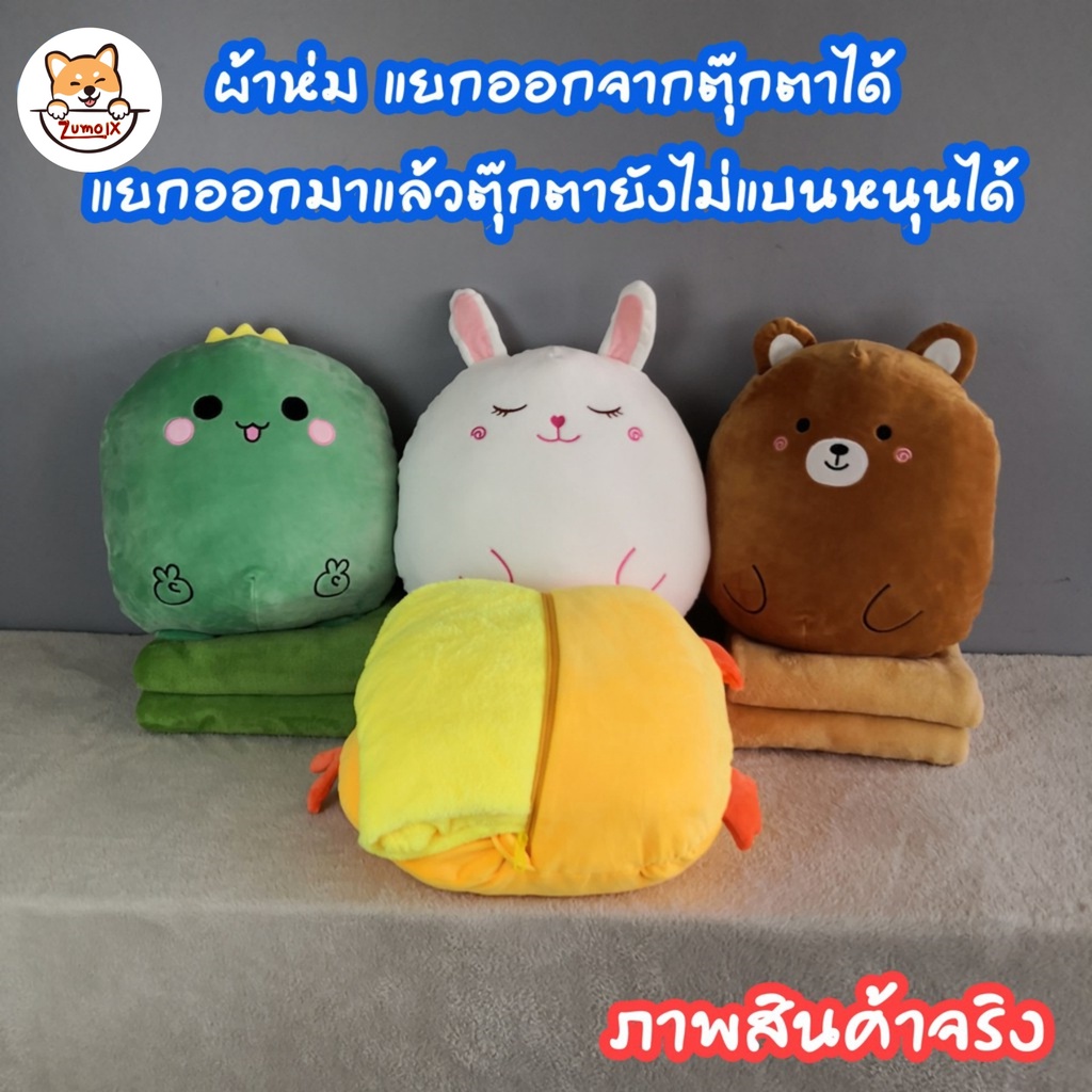 หมอนผ้าห่มกลม แฟนซี รูปสัตว์ ผ้าห่มนาโน 1.1x1.6 M ตุ๊กตา Size M ลายปักอย่างดี ผ้านุ่มมาก Pillow Blanket ZumoIX