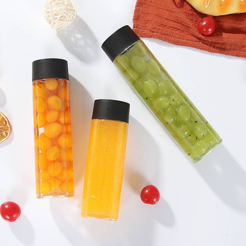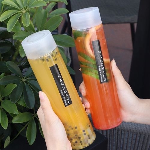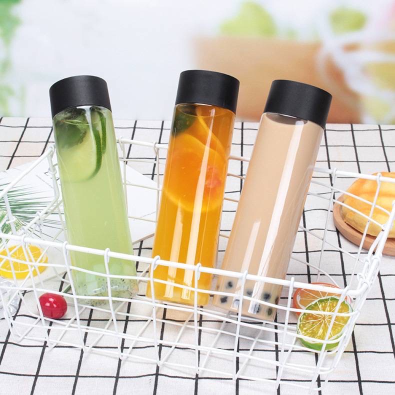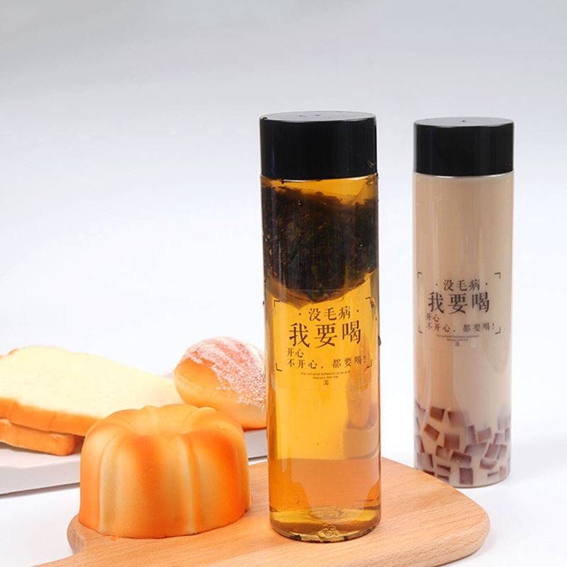 ขวดพลาสติกใส (PET) ทรงกระบอกยาว ฝาขาว ดำ ขนาด 400-500ml ขวดใส่ชา กาแฟ ขวดใส่ชาไข่มุก