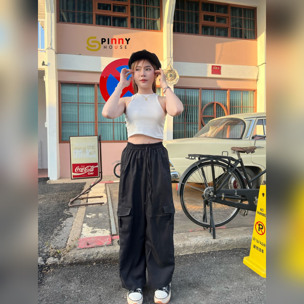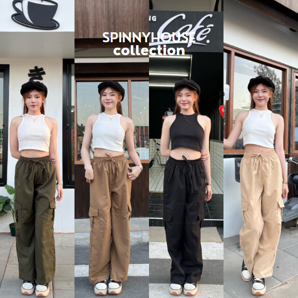 🌈 SpinnyHouse 🌈 กางเกงคาร์โก้ ขากระบอก ผ้าไมโครเนื้อดี💛งานสวย แมชง่าย ดีเทลกระเป๋าข้าง สไตล์วัยรุ่น รุ่น กางเกงคาร์โก้