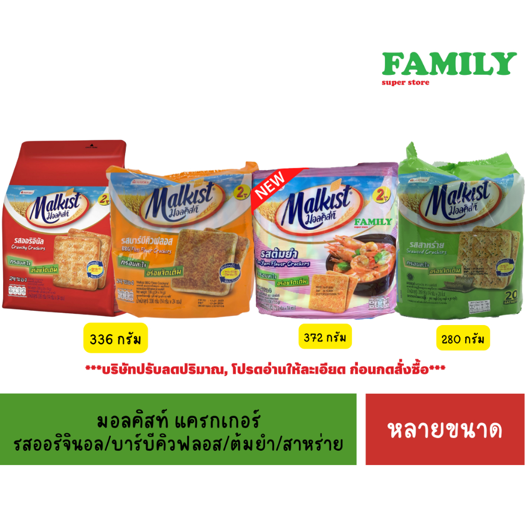 มอลคิสท์ แครกเกอร์ 20/24 ชิ้น 4 รส - รสออริจินอล -รสบาบีคิวฟลอส -รสสาหร่าย -รสต้มยำ ขนมปังกรอบคุณภาพดี กรุบกรอบ รสชาติเยี่ยม หอมอร่อยไปกับรสชาติเข้มข้น ที่ให้คุณอร่อยได้ทุกที่ ทุกโอกาส และทุกเวลา - มอลคิสท์ แครกเกอร์แสนอร่อย - กรุบกรอบ เข้มข้น หอม อร่อยลงตัว - มีประโยชน์จากวิตามินหลาก