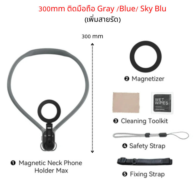 ... e ** หมายเหตุ:สามารถสั่งซื้อได้ในระยะทางไม่เกิน 40 กม.ผู้ซื้อและผู้ขายต้องปักหมุดตำแหน่งที่อยู่สำหรับการจัดส่งสินค้าในขั้นตอนการตั้งค่าที่อยู่ให้ถูกต้อง # [ส่งด่วน 30 นาที กทม] เลือกการจัดส่งเป็น “ผู้ซื้อรับสินค้า” โดยค่าจัดส่งจะขึ้นอยู่กับระยะทางและลูกค้าต้องทำการชำระเงินกับแมสเซนเจอร์ด้วยตัวเอง โดยลูกค้าสามารถส่งข้อความหาแอดมินเช็คค่าจัดส่งได้ก่อนทำการจัดส่ง # ถ้าลูกค้าเลือกเป็น (Standard Delivery - ส่งธรรมดาในประเทศ) คือส่งขนส่งนะครับ** **หมายเหตุเมื่อลูกค้าเลือกช่องทางการจัดส่งมาแล้วจะไม่สามารถเปลี่ยนแปลงภายหลังได้** สินค้ามี 5 ตัวเลือก 1. 280mm ติดมือถือเทา (สายคล้องคอแบบแม่เหล็กติดโทรศัพท์สีเทา) 2. 280mm ติดมือถือฟ้า (สายคล้องคอแบบแม่เหล็กติดโทรศัพท์สีฟ้า) 3. 300mm ติดมือถือ Gray (เพิ่มสายรัด) 4. 300mm ติดมือถือ Blue (เพิ่มสายรัด) 5. 300mm ติดมือถือ Sky Blue (เพิ่มสายรัด) ***สายรัดตัวมีให้เฉพาะขนาด 300mm การเพิ่มสายรัดตัวเข้ามาช่วยในเรื่องเวลาที่ทำกิจกรรมต่างๆ เช่น วิ่ง ปั่นจักรยาน จะมีการสั่นของกล้องเวลาถ่าย เลยต้องใช้สายรัดตัวเข้ามาช่วยในเรื่องนี้ค่ะ*** คุณสมบัติ 1. ปล่อยแม่เหล็กอย่างรวดเร็ว ปล่อยมือของคุณ และเปิดใช้งานการถ่ายภาพคนแรกด้วยโทรศัพท์มือถือของคุณ 2. สายคล้องคอสแตนเลสหุ้มด้วยแท่งอลูมิเนียมที่เป็นของแข็งเพื่อให้แน่ใจว่าได้รับการรองรับ และชั้นนอกหุ้มด้วยซิลิโคนที่เหมาะกับผิวหนังเพื่อให้สวมใส่สบาย 3. สลับระหว่างหน้าจอแนวนอนและแนวตั้งและโหมดหลายมุม ตอบสนองความต้องการหลักในการถ่ายภาพวิดีโอสั้น สลับระหว่างหน้าจอแนวนอน หน้าจอแนวตั้ง การถ่ายภาพเหนือศีรษะ และการถ่ายภาพขึ้นด้านบนได้ตามต้องการ ความเข้ากันได้ เหมาะสมโดยตรงสำหรับโทรศัพท์มือถือซีรีส์ iPhone 12 ขึ้นไปหรือเคสโทรศัพท์มือถือที่มีฟังก์ชัน MAGSAFE เข้ากันได้กับโทรศัพท์ Android ผ่านแผ่นดึงดูดแม่เหล็ก (รวมอยู่ในแพ็คเกจ) รับประกันสินค้า ● ประกันศูนย์ Telesin ไทย 6 เดือน ---------------------------------------- หมายเหตุ ✔️สินค้าทุกชิ้นของทางร้าน เป็นสินค้าใหม่ ของแท้ 100% สามารถออกใบกำกับภาษีเต็มรูปแบบได้ ✔️บริษัทฯ ยินดีรับเปลี่ยน / คืนสินค้า ภายใน 7 วัน ✔️เก็บเงินปลายทางได้ 🖥️กรณีสินค้าจอ monitor 1.สินค้ามีปัญหาภายใน 7 วัน : นับจากวันที่ได้รับสินค้า ต้องเป็นความเสียหายที่เกิดจากความผิดปกติของตัวสินค้าเอง เช่น กล้องค้าง จอดับ, จอเป็นเส้น,Dead pixel 4 จุดขึ้นไป, ลำโพงไม่มีเสียง, แบตเตอรี่ เป็นต้น - สินค้าต้องไม่ แตก หัก บิ่น งอ และสีไม่ลอก - ไม่รวมถึงความเสียหายเกี่ยวกับซอฟแวร์ 2.สินค้าชำรุด/เสียหาย : ส่งสินค้ากลับมาให้ทางบริษัทตรวจสอบ ก