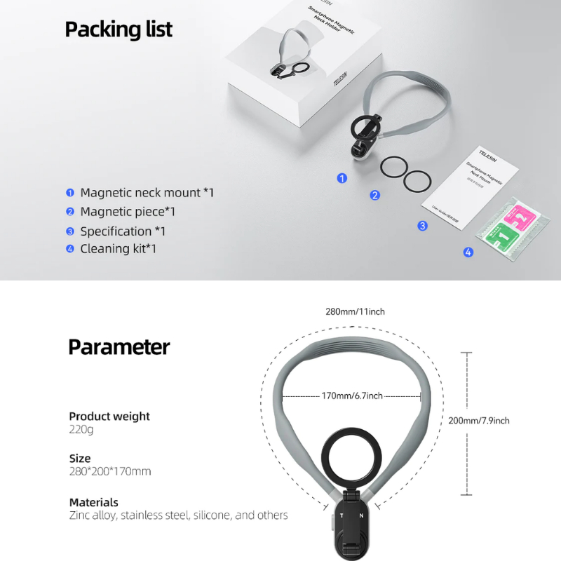 Telesin สายคล้องคอแบบแม่เหล็กติดโทรศัพท์ Magnetic Neck Mount for Phones