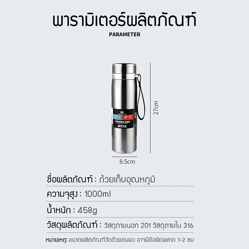 Spot ❤ สินค้าที่ส่งจากกรุงเทพมีพร้อมสำหรับการจัดส่ง (เช็คสต๊อกทุกวัน) สามารถกดสั่งซื้อได้เลย กระบอกน้ำร้อน กระติกเก็บน้ำร้อน กระติกเก็บเย็น 1000มลสแตนเลส กระติกน้ำ แก้วเก็บเย็น12ชม แก้วน้ำสแตนเลส กระบอกน้ำสูญญากาศ มีการรับประกั กระติกน้ำสแตนเลสเก็บอุณหภูมิ ผลิตภัณฑ์นี้เหมาะสำหรับธุรกิจและการพักผ