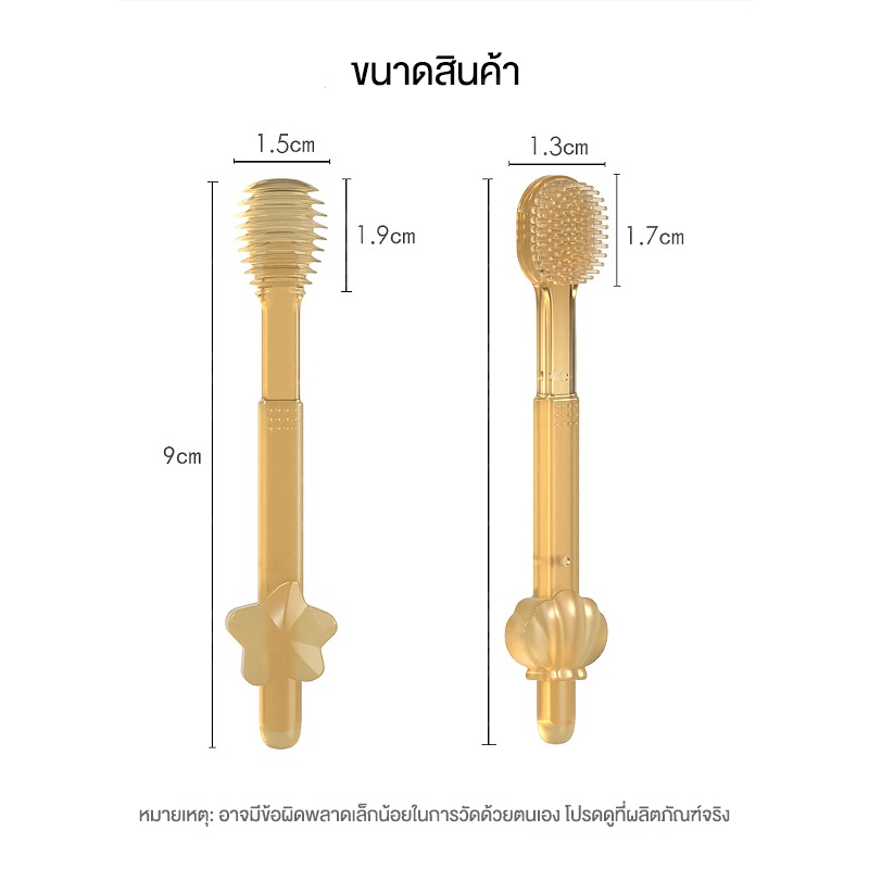 ... นตรงที่รูปแบบดีไซน์ค่ะ 👶🏻 ขนแปรงซิ ลิโคนนุ่ม อ่อนโยนต่อฟันและเหงือก ช่วยทำความสะอาดฟัน ลิ้น และเหงือก ได้ดี หัวแปรงขนาดเล็ก สามารถทำความสะอาดฟันได้ทั่วทุกซี่ 👶🏻 ด้ามจับเล็กพอดีมือ 😻 ข้อมูลตัวสินค้า ✔ น้ำหนัก: 50 + 10 กรัม ✔ วัสดุ: ซิลิโคน ✔ บรรจุ: ชุด 2 ชิ้นพร้อมกล่องเก็บของ ✔ ขนาด:9 * 1.3 ซม ขนาด:9 * 1.5 ซม