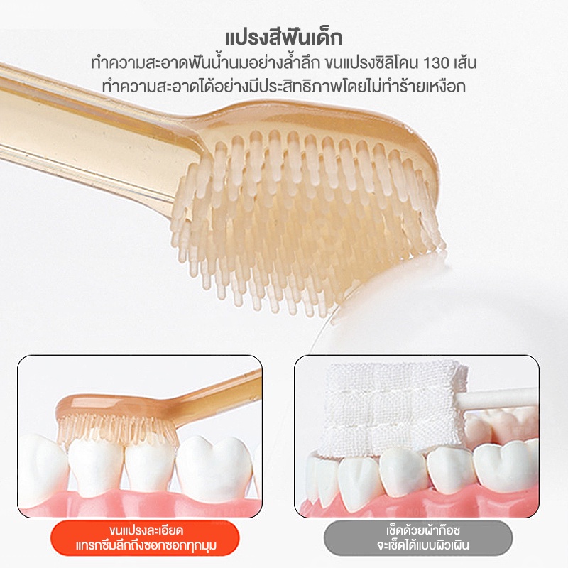 ชุดแปรงสีฟันเด็ก หัวแปรงซิลิโคน 360 องศา 0-18 เดือน พร้อมแก้ว