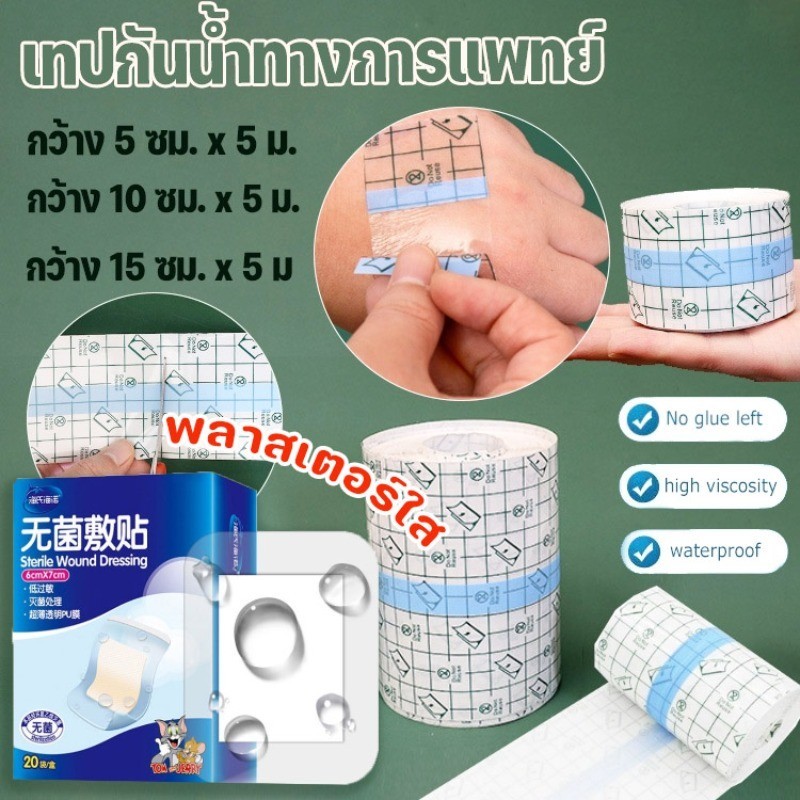📢พร้อมส่ง📢เทปการแพทย์ แผ่นฟิล์มใสกันน้ำ แผ่นปิดแผล เทปพันแผลแบบติดแน่น 5M PUแ ผ่นฟิล์มใส
