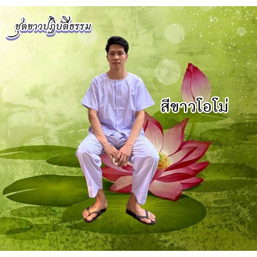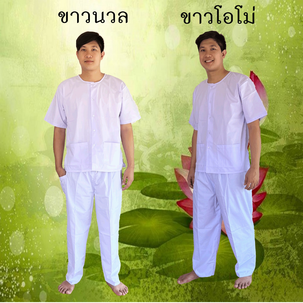 ชุดขาวปฎิบัติธรรมขาวโอโม่ ทั้งชุด เสื้อ+กางเกง