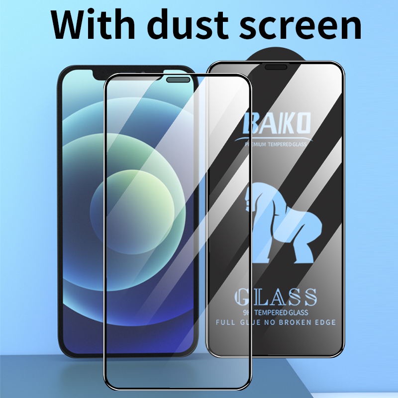 ฟิล์มกระจกเต็มจอ [มีตะแกรงกันฝุ่น] For iPhone 16,15,14 Pro Max,14 Plus,13/13 Mini/12 Pro Max/12 Mini/11 Pro Max/11/13