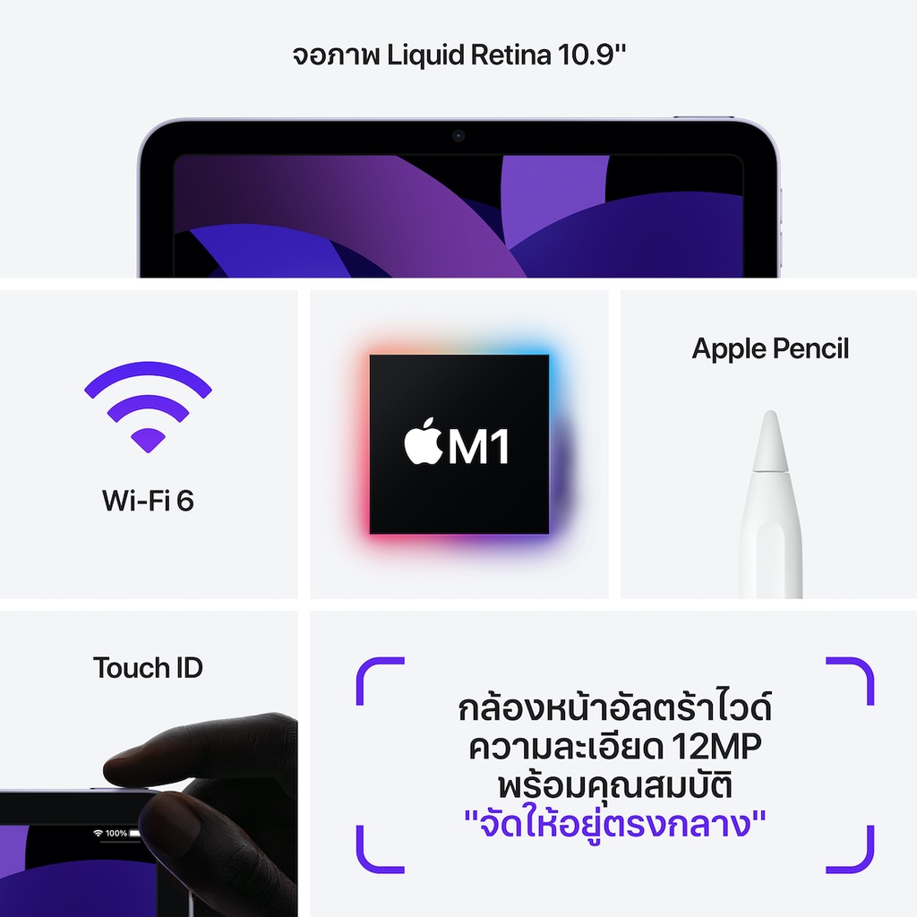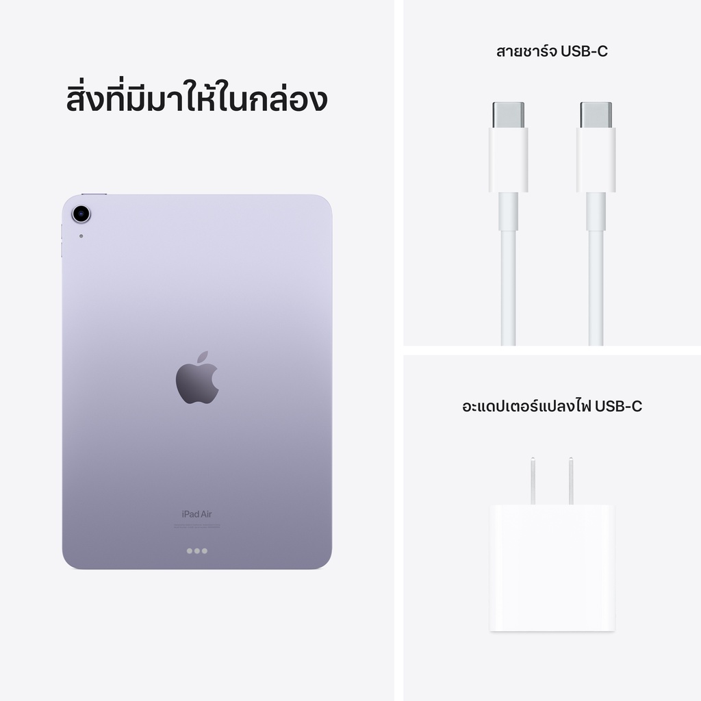 ... ยกเลิกคำสั่งซื้อโดยไม่แจ้งให้ทราบล่วงหน้า 📍เงื่อนไขเป็นไปตามที่ร้านค้ากำหนด รวมถึงเงื่อนไขการให้บริการของ Shopee (https://shopee.co.th/docs/3607) 📍การออกใบกำกับภาษี >> ทางร้านจะออกใบกำกับภาษีด้วย ชื่อ-ที่อยู่ จากข้อมูลการจัดส่งสินค้า ที่ลูกค้าได้ลงทะเบียนไว้ในระบบShopee >> ใบเสร็จคือใบรับประกันสินค้า โปรดเก็บไว้เสมอ **หากไม่มีใบเสร็จโปรดแจ้งเจ้าหน้าที่ทางแชท** >> ขอใบกำกับภาษีในนาม บริษัท/นิติบุคคล ลูกค้ากรอกข้อมูลเข้ามาในระบบของ Shopee ได้ตั้งแต่ก่อนกดชำระเงิน **ไม่สามารถออกใบกำกับภาษีให้ใหม่ หรือ แก้ไขย้อนหลังได้ 📍การเปลี่ยนที่อยู่ >> ทางร้านไม่สามารถแก้ไขที่อยู่การจัดส่งได้ ลูกค้าสามารถเปลี่ยนที่อยู่ในคำสั่งซื้อที่ระบบShopee ได้เอง ถ้าหากเลขพัสดุ(Tracking)ขึ้นแล้ว จะไม่สามารถแก้ไขได้ ต้องยกเลิกและสั่งใหม่เท่านั้น 📍การขอเปลี่ยนสี/เปลี่ยนสินค้า/หรือสั่งสินค้าผิด >> ทางร้านสงวนสิทธิ์ในการเปลี่ยนแปลงสินค้าทุกกรณี ลูกค้าต้องกดยกเลิกแล้วทำการสั่งซื้อเข้ามาใหม่เท่านั้น 📍การรับประกันสินค้า Apple ที่สั่งซื้อผ่านช่องทางออนไลน์ >> รับประกันสินค้า 1 ปี ใช้บริการที่ศูนย์ iCare , iCenter , iService ได้ทุกสาขา ใช้ใบเสร็จเป็นหลักฐานในการรับประกัน >> รับประกันสินค้าที่เกิดจากความผิดพลาดจากการผลิตด้าน Software ซึ่งทำให้ไม่สามารถใช้งานได้ตามปกติ เท่านั้น >> ไม่รับประกันในกรณี ที่เกิดจากอุบัติเหตุ เช่น ทำตก รวมถึงสินค้า Cosmetic ที่มีรอยขีดข่วนขนาดเล็ก หรือ ฝุ่นขนาดเล็ก ที่ไม่มีผลต่อการใช้งาน ทางร้านขอสงวนสิทธิ์ในการเคลม/คืนสินค้า ทุกกรณี 📍การขอเปลี่ยน-คืนสินค้า/เปลี่ยนใจ >>หากแกะสินค้าแล้ว เปิดเครื่องแล้ว ไม่สามารถคืนสินค้าได้ 📍เพื่อรักษาผลประโยชน์ของลูกค้า ต้องทำการถ่ายวีดีโอขณะเปิดกล่องพัสดุ/กล่องสินค้า ให้เห็นสภาพกล่องและสินค้าให้ชัดเจน เช็ครุ่นให้ตรงกับคำสั่งซื้อ หากพบเจอปัญหาห้ามเปิดใช้งานสินค้า และส่งหลักฐานแจ้งเจ้าหน้าที่ทางแชท >> หากไม่มีวีดีโอยืนยัน หรือมีการเปิดใช้งานเครื่องแล้ว ไม่สามารถเปลี่ยน-เคลมสินค้าได้ทุกกรณี 📍ลูกค้าเก็บใบเสร็จเป็นหลักฐานในการรับประกันโดยนับประกันจากวันที่สั่งซื้อในใบเสร็จ กรณีที่ศูนย์แจ้งและออกเอกสารใบแสดงอาการ ลูกค้าสามารถทำเรื่องคืนสินค้าได้ หากไม่มีเอกสารจากทางศูนย์ ทางร้านขอสงวนสิทธิ์ในการเคลม/คืนสินค้า ============================================================= iPad Air 5 [ชิป M1] iPad Air มีทั้งจอภาพ Liquid Retina ขนาด 10.9 นิ้ว1 ที่เต็มอิ่มสมจริง และชิป M1 สุดล้ำซึ่งมาพร้อมประสิทธิภาพที่เร็วขึ้น iPad Air จึงกลายเป็นขุมพลังแห่งการสร้างสรรค์และการเล่นเกมแบบพกพา ทั้งยังมี Touc
