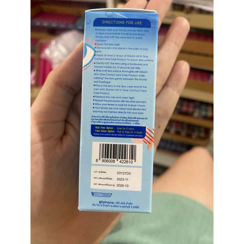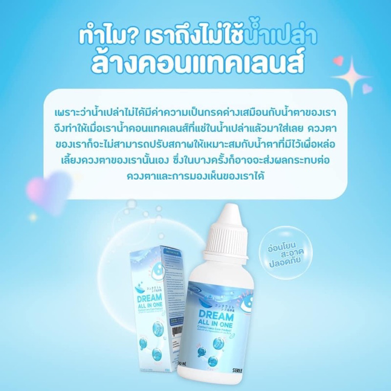 ผลิต = เดือน11 ปี2023 หมดอายุ = เดือน10 ปี2026 New‼️‼️‼️ น้ำยาล้างคอนแทคเลนส์ DREAM ALL IN ONE 30 ml. ล้าง แช่ หยอด จบครบใน1เดียว มีอย ไทย . เลขที่ 54-2-2-2-0005484