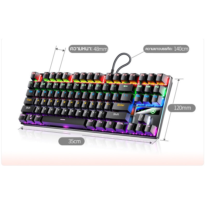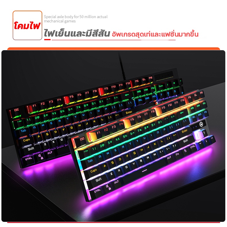 คีย์บอร์ด คีบอร์ดเกมมิ่ง Keyboard Gaming Blue switch คีย์บอร์ด 87 Key Mechanical Keyboard แป้นพิมพ์คอม คีย์บอร์ดมีไฟ