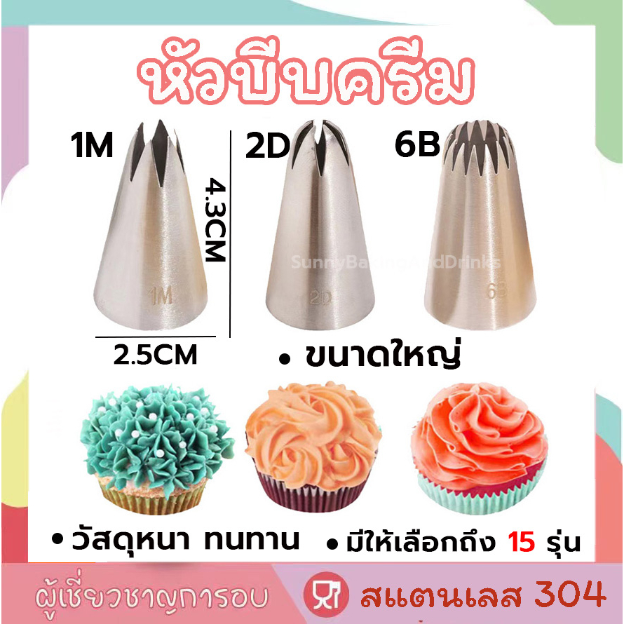 ☀️โค้ดส่งฟรี ☀️ หัวบีบครีม เบอร์ 1M 2D 6B หัวบีบเค้ก หัวบีบ บีบครีม ทำขนม ทำคุกกี้