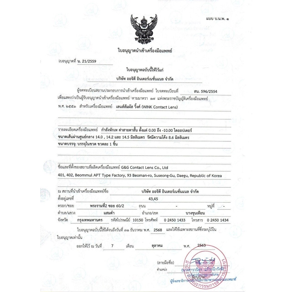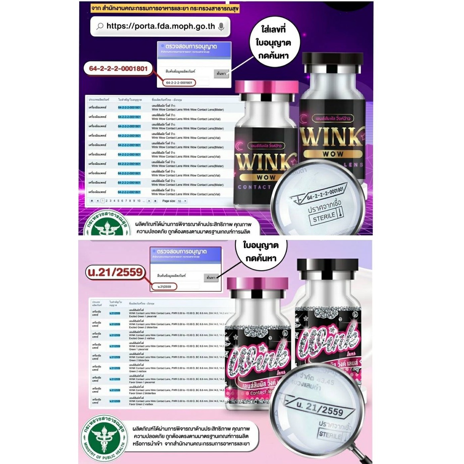 ... มีน้ำยาแช่เลนส์ และตลับเซทน่ารัก จำหน่ายเพิ่มเติม 🛑ทางร้านจะจัดตามที่ลูกค้าเลือกมาเท่านั้นค่ะ เพื่อป้องกันข้อผิดพลาด ไม่รับเปลี่ยนสี/ค่าสายตา /ชื่อที่อยู่เบอร์โทรในแชท ลูกค้าควรตรวจสอบให้แน่ใจ ก่อนกดยืนยันการซื้อ ใบอนุญาติเครื่องมือแพทย์ Wink Lens ค่าอมน้ำ 46% ✨ น. 21/2559 Lovely Lens ค่าอมน้ำ 42% ✨ น.4/2563 ▪️ร้านเราสต๊อก 3สี Black/ Gray / Brown หรือ Chestnut สีเดียวกันค่ะ 🧊ขนาดเลนส์ - Dia. 14.3 ขนาดเท่าตา เลนส์เล็ก จะเขียนชื่อลายว่า Mini - Dia. 14.5 ไม่เขียนว่า Mini คือบิ๊กอาย ตาโตทั้งหมด ยิ่งตัดขอบดำยิ่งตาโต ชอบแบบไหนเลือกเลยค่ะ 🚨อ่านตรงนี้หน่อยน้า - แกะขวดแล้วทางร้านไม่รับเปลี่ยนคืน/เคลม ทุกกรณีนะคะ - ได้ของแล้วรบกวนลูกค้าเช็คเลนส์ก่อนแกะขวดน้า 🔎 วิธีเช็คเลนส์ก่อนแกะขวด - เปิดแฟลชมือถือแล้วส่องเลนส์จากก้นขวด จะเห็นรายละเอียดเลนส์ค่า หากพบว่าเลนส์มีปัญหาตรงไหนแจ้งเคลมกับทางร้านได้เลยน้า **หากสินค้ามีปัญหา ทางร้านรับเคลมภายใน 7 วันหลังจากลูกค้าได้ของน้า** 💟วิธีค้นหาบิ๊กอายรายเดือน 1.ไปที่ร้านเรา โดยกดคำว่าร้านค้า 2.กดดูสินค้าแต่ละ ลายเลือกลายที่ชอบ 3.เลือกให้ตรงกับค่าสายตา กรุณาวัดค่าสายตาก่อนซื้อ❣️ ถ้าสายตาปกติ เลือก 0.00 สายตาสั้น เลือกค่าสายตาของลูกค้าเลยค่ะ เช่น สั้น 50 เลือก -0.50 สั้น 500 เลือก -5.00 🛑ไม่มีสายตาเอียง สายตายาว ☘แบบสุ่มลาย คือ งดเลือกลาย ให้ทางร้านช่วยเลือกลายสวยๆให้ คละลายให้ จะไม่เหมาะกับลูกค้าสายตาไม่เท่ากัน ต้องเข้าร้านเราเลือกลายเหมือนเดียวกัน2คู่ 🛑สำคัญมาก ลูกค้าที่สายตาไม่เท่ากัน ไม่แนะนำซื้อแบบคละลาย เพราะเราจะคละลายให้ค่ะ 🛍 แถมตลับให้ทุกคู่ คละสีให้ เลือกไม่ได้ / เปลี่ยนเป็นอย่างอื่นไม่ได้ _____________________________________________ 💕About Contact Lens💕 1. ทำความสะอาดอย่างไรดีที่สุด ? - เมื่อแกะขวดเลนส์แล้ว ให้เทน้ำยาที่มาพร้อมกับเลนส์ทิ้ง - นำเลนส์มาล้างทำความสะอาดด้วยน้ำยาแช่เลนส์หรือน้ำเกลือ - นำเลนส์วางบนฝ่ามือ เทน้ำยาบนเลนส์ ใช้ปลายนิ้วถูวนบนเลนส์เบาๆทั้ง 2 ด้าน ด้านละ 15 วิ - นำเลนส์ใส่ตลับที่เทน้ำยาไว้แล้ว เพื่อแช่เลนส์ค่ะ 🔸ห้ามถูแรงน้า ทำอย่างเบามือ เพื่อป้องกันเลนส์ฉีกขาด 2. ก่อนใส่จริงต้องทำอย่างไร ? ❌ หลายคนอาจใช้วิธีแกะปุ๊บใส่ปั๊บ ซึ่งเป็นวิธีที่ผิด ✅ วิธีที่ถูกต้องคือ ควรแช่เลนส์ด้วย "น้ำยาแช่คอนแทคเลนส์" โดยเฉพาะ แช่ทิ้งไว้ประมาณ 6-8 ชม. หรือ 1 คืน เพื่อให้ตัวเลนส์กักเก็บความชุ่มชื้น เวลาใส่จะสบายตามากๆไม่ทำให้ระคายเคืองดวงตาจ้า 🔸ควรเปลี่ยนน้ำยาแช่คอนแทค "ทุกวัน" เพื่อความสะอาดน้า 🙏ส่งให้ด่วนที่สุด ขอบพระคุณค่ะ🙏